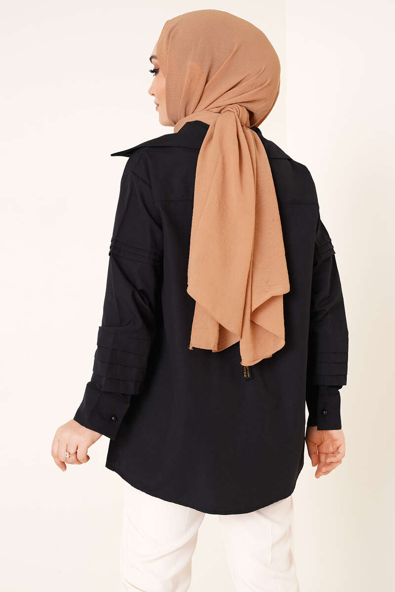 Taş Düğmeli Omuz Pileli Gömlek Kahve