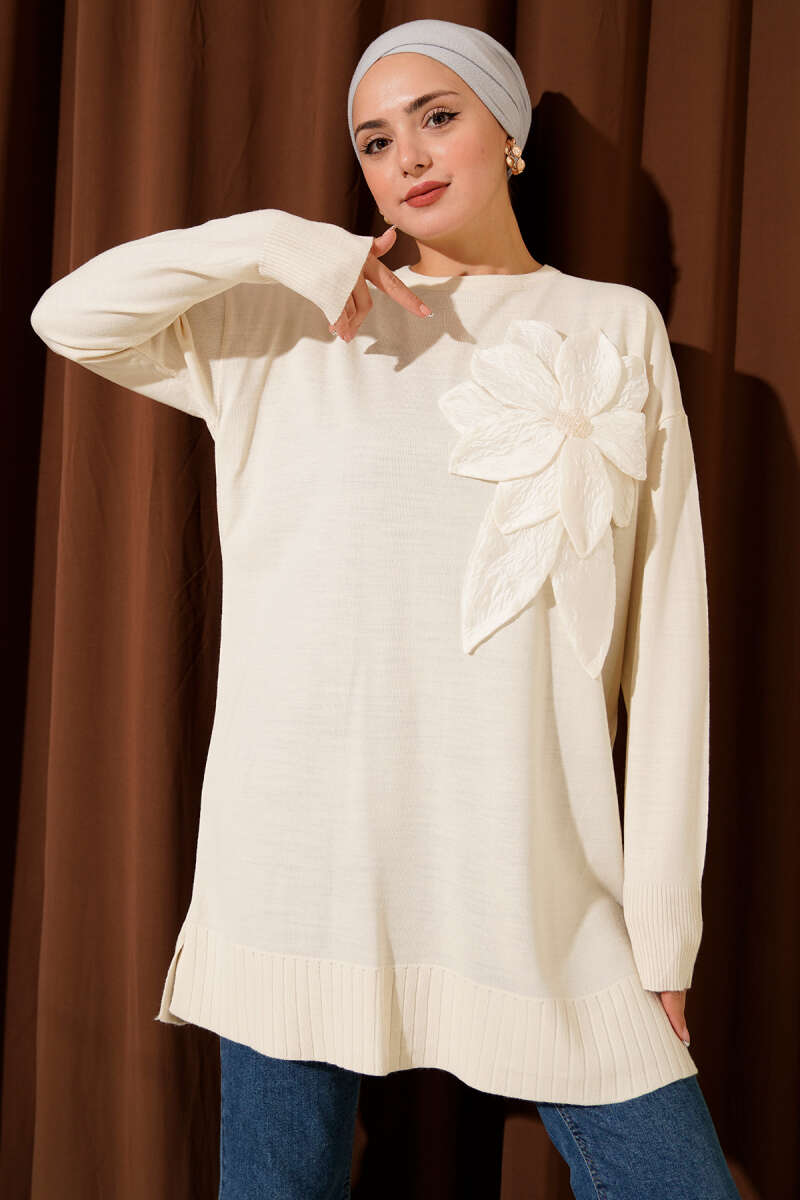 Çizgi Kabartmalı Merserize Triko Tunik Nefti