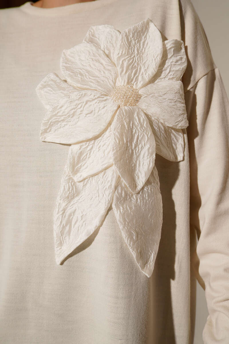 Büyük Çiçek Desenli Triko Tunik Siyah