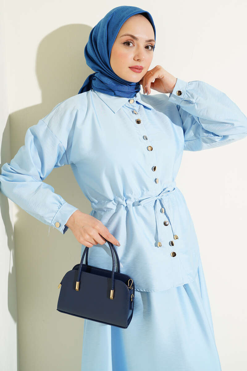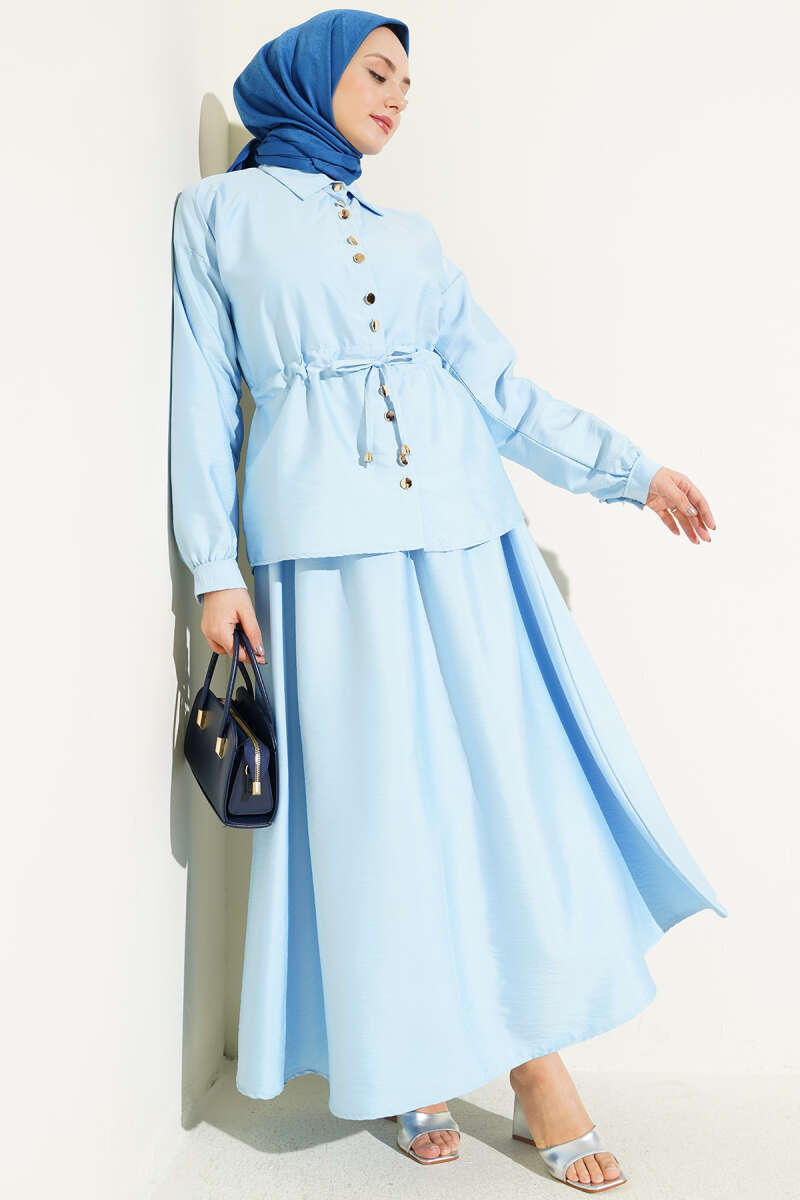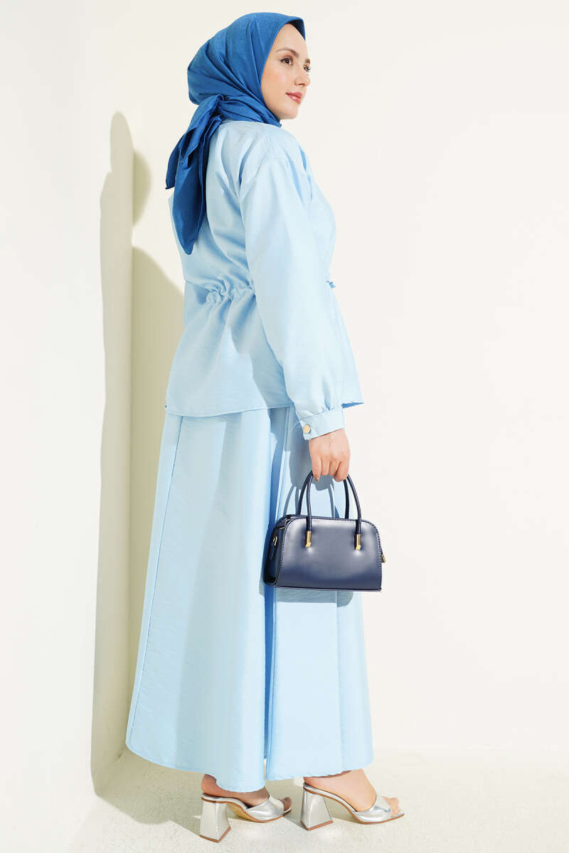 Büzgü detayıyla modern silüeti birleştiren bu ikili takım, tek bir dokunuşla eksiksiz bir kombin sunuyor. Akışkan kumaşı ve zarif detaylarıyla gün boyu hem çok şık hem de çok rahat hissedeceksiniz.