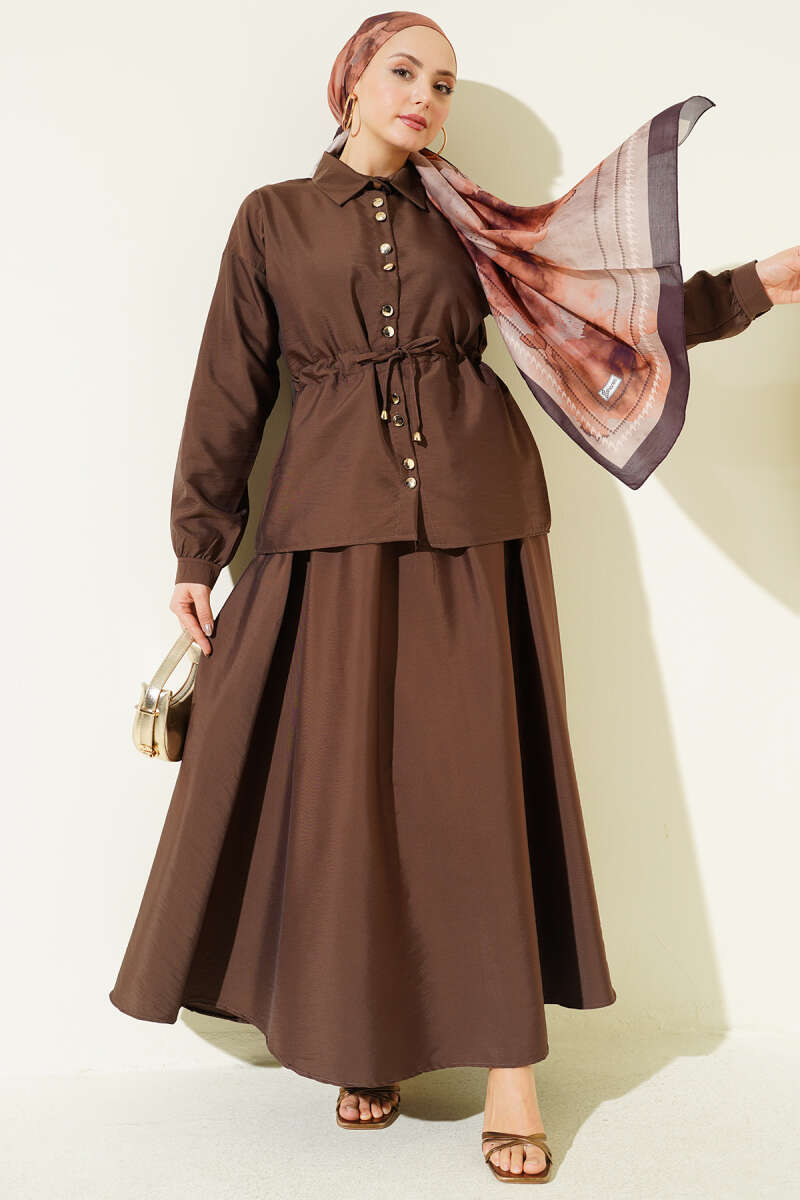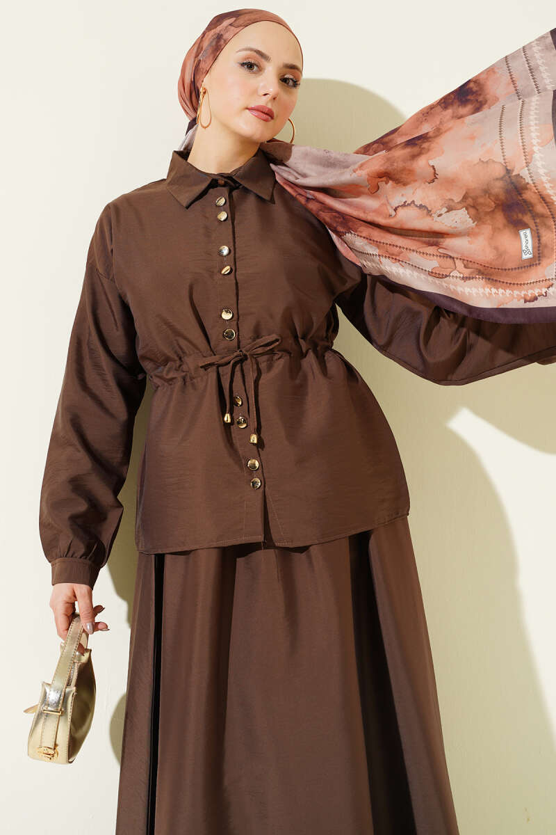 Bisiklet Yaka Bel Lastikli Takım Kahve