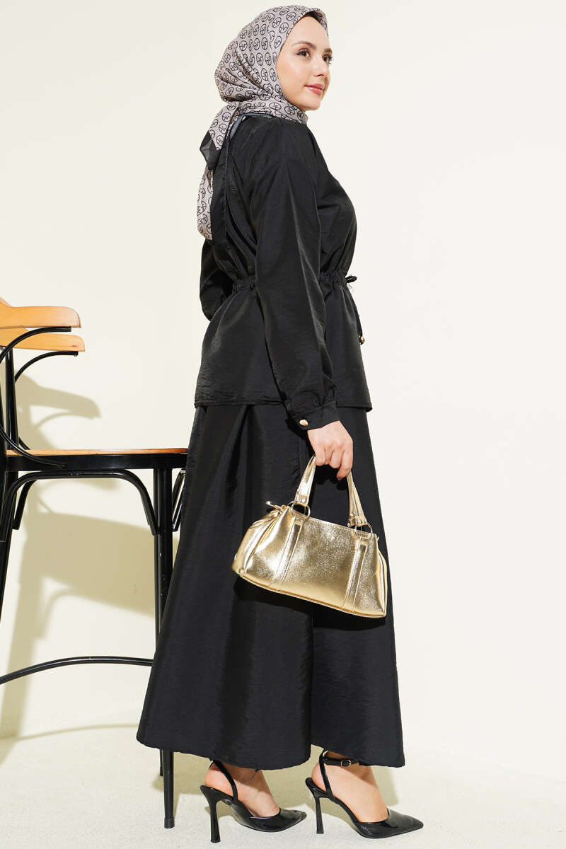Büzgü Detaylı Paraşüt İkili Takım Siyah
