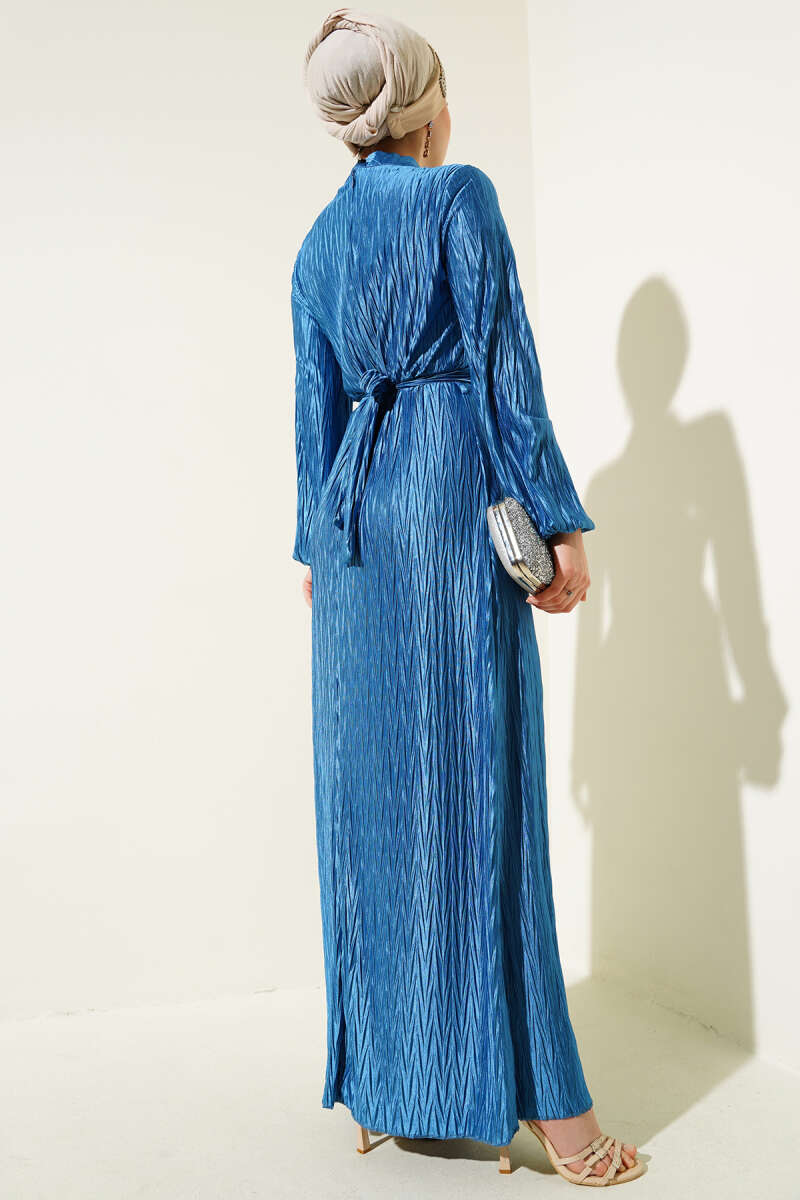 Pelerin Detaylı Pul Payet Abiye Elbise Lacivert