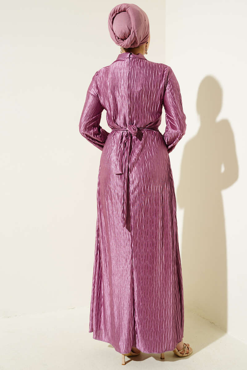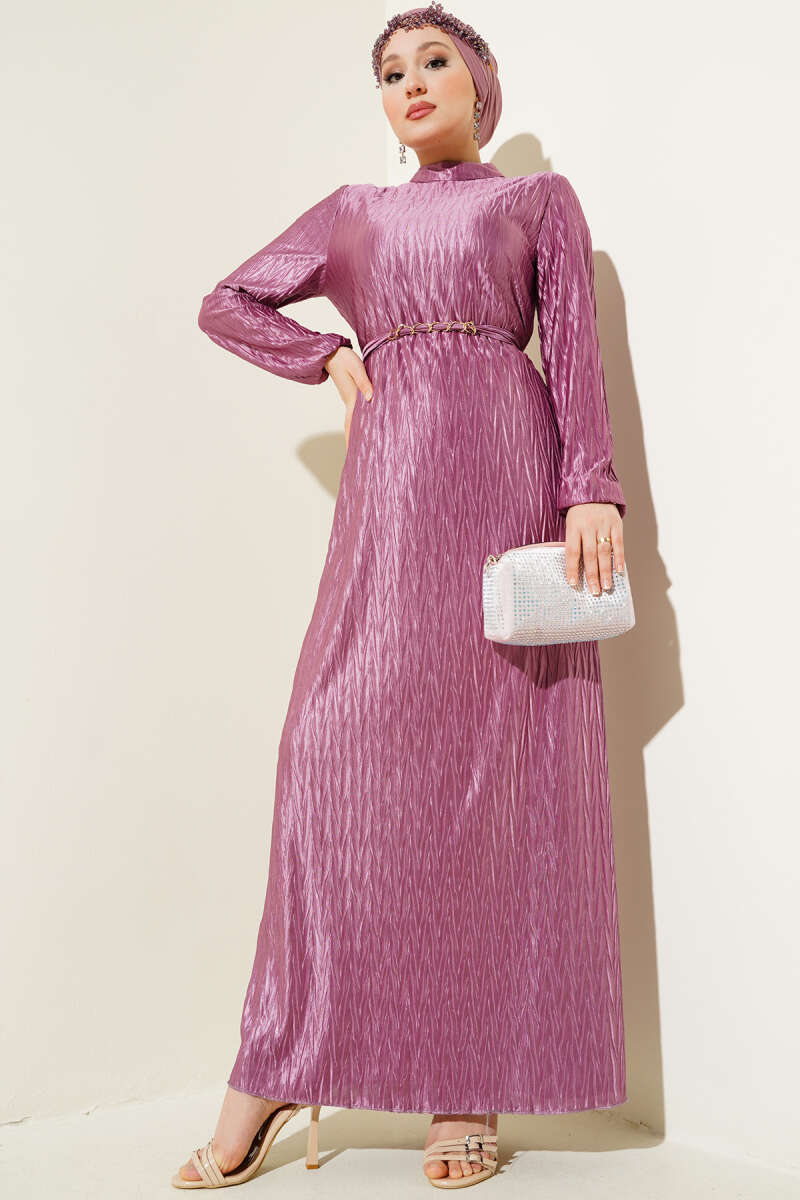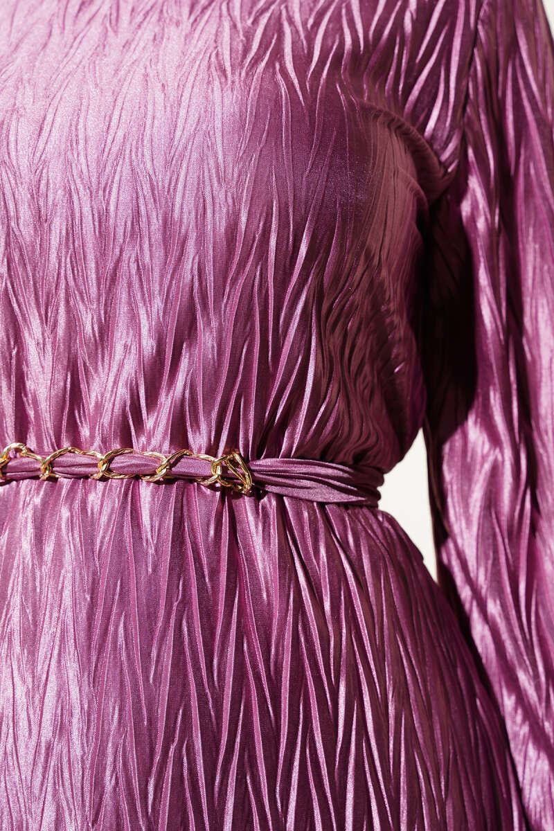 Büzgü Piliseli Kuşaklı Elbise Füme