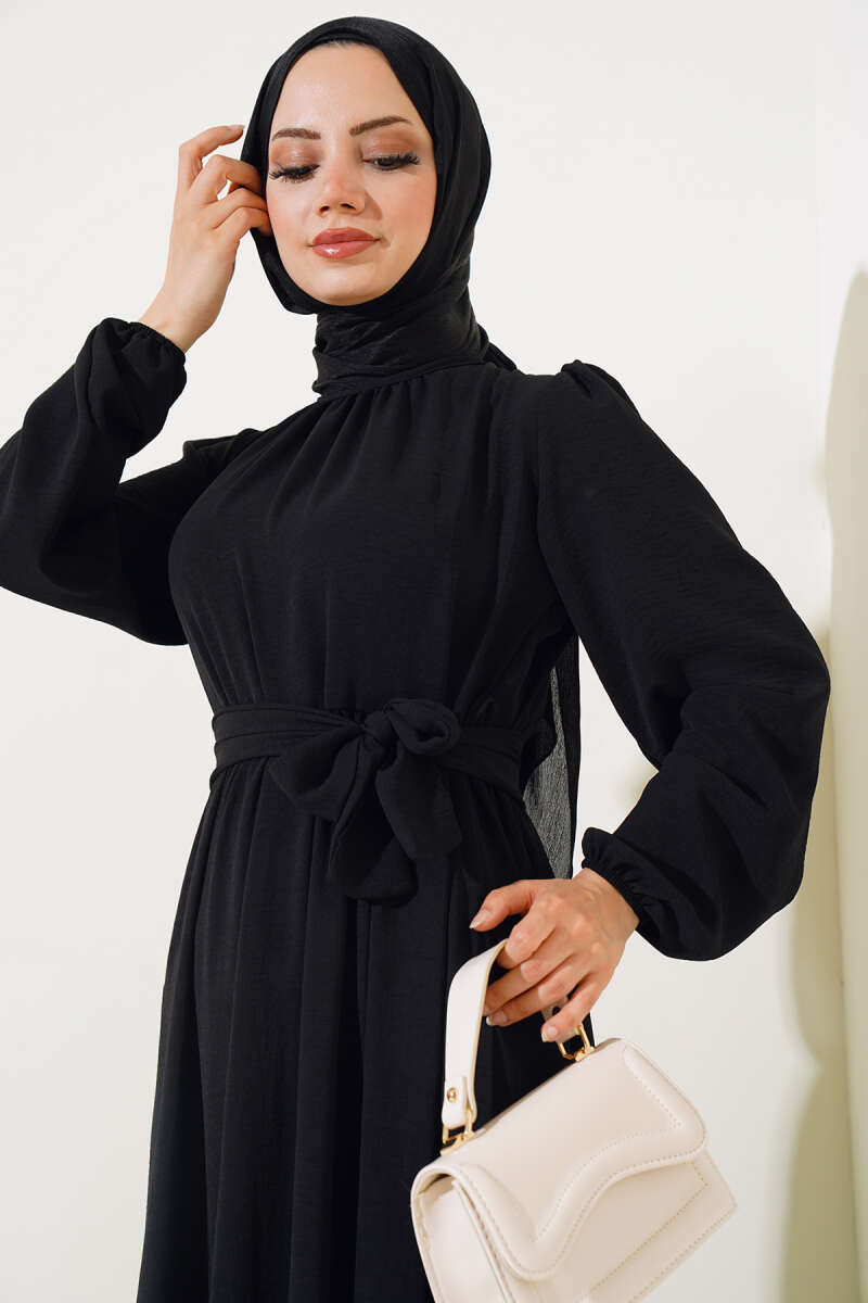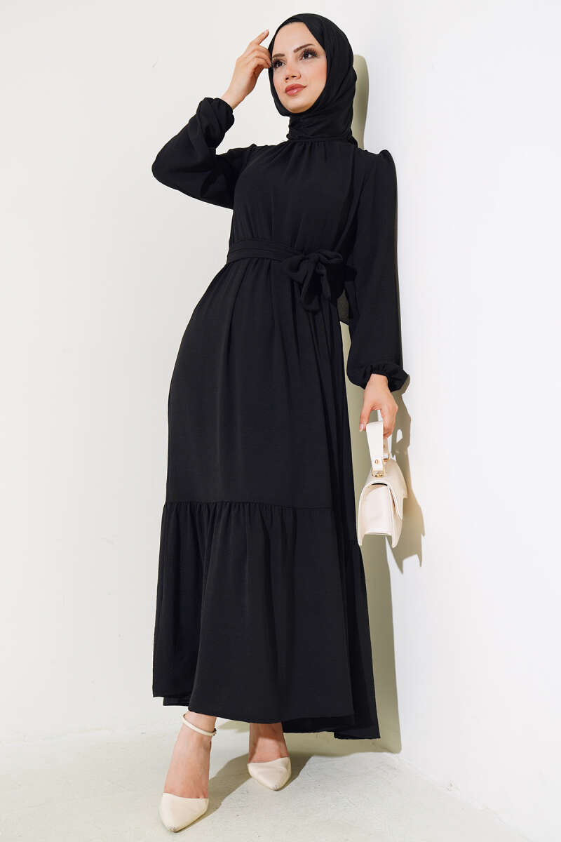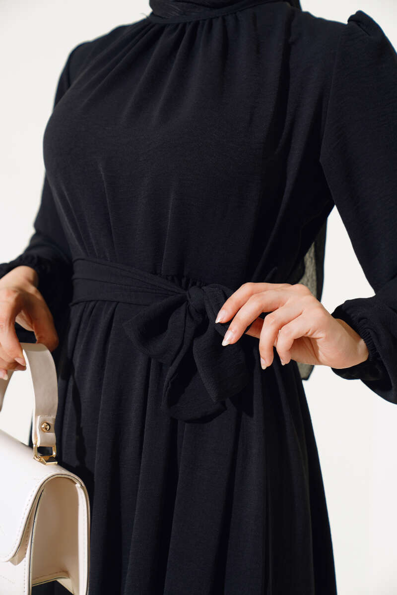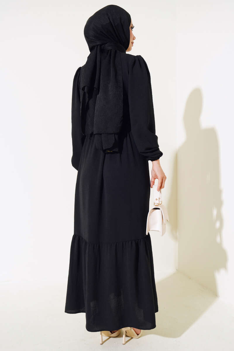Büzgülü Ayrobin Elbise Siyah