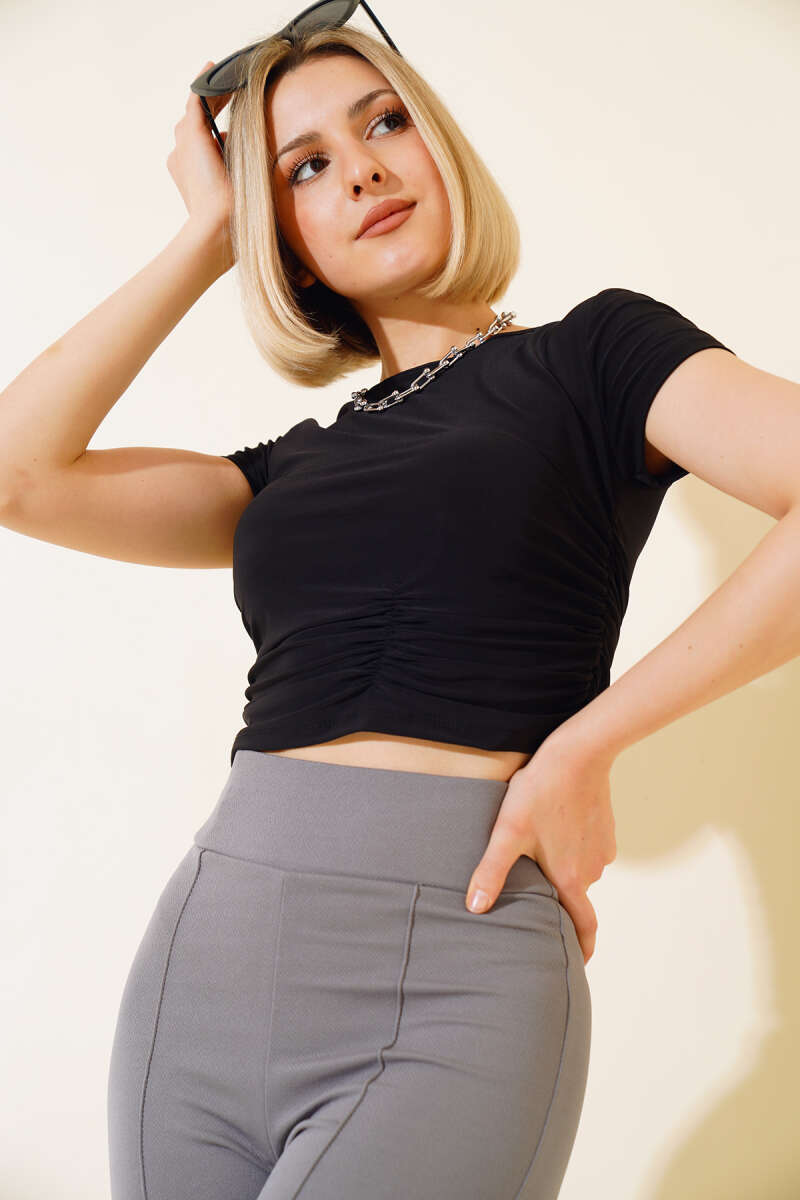Büzgülü Kısa Kol Bluz Siyah