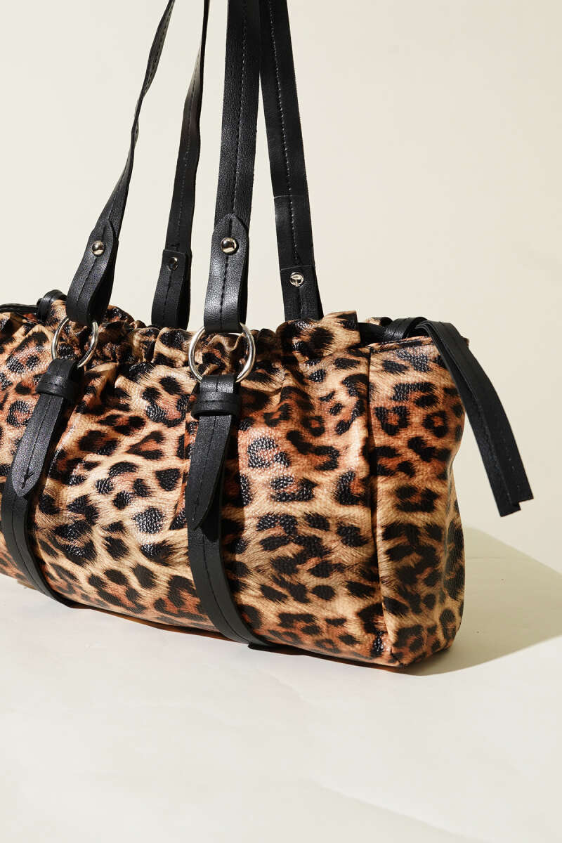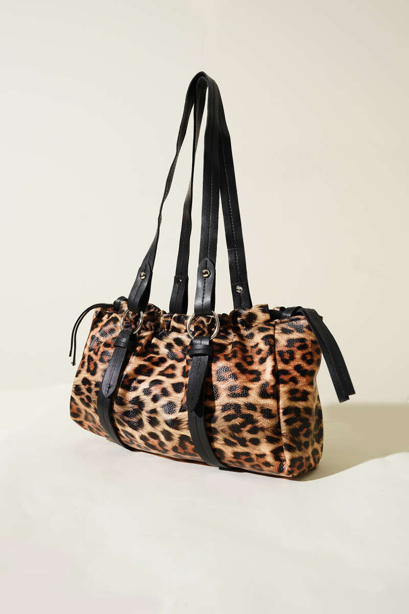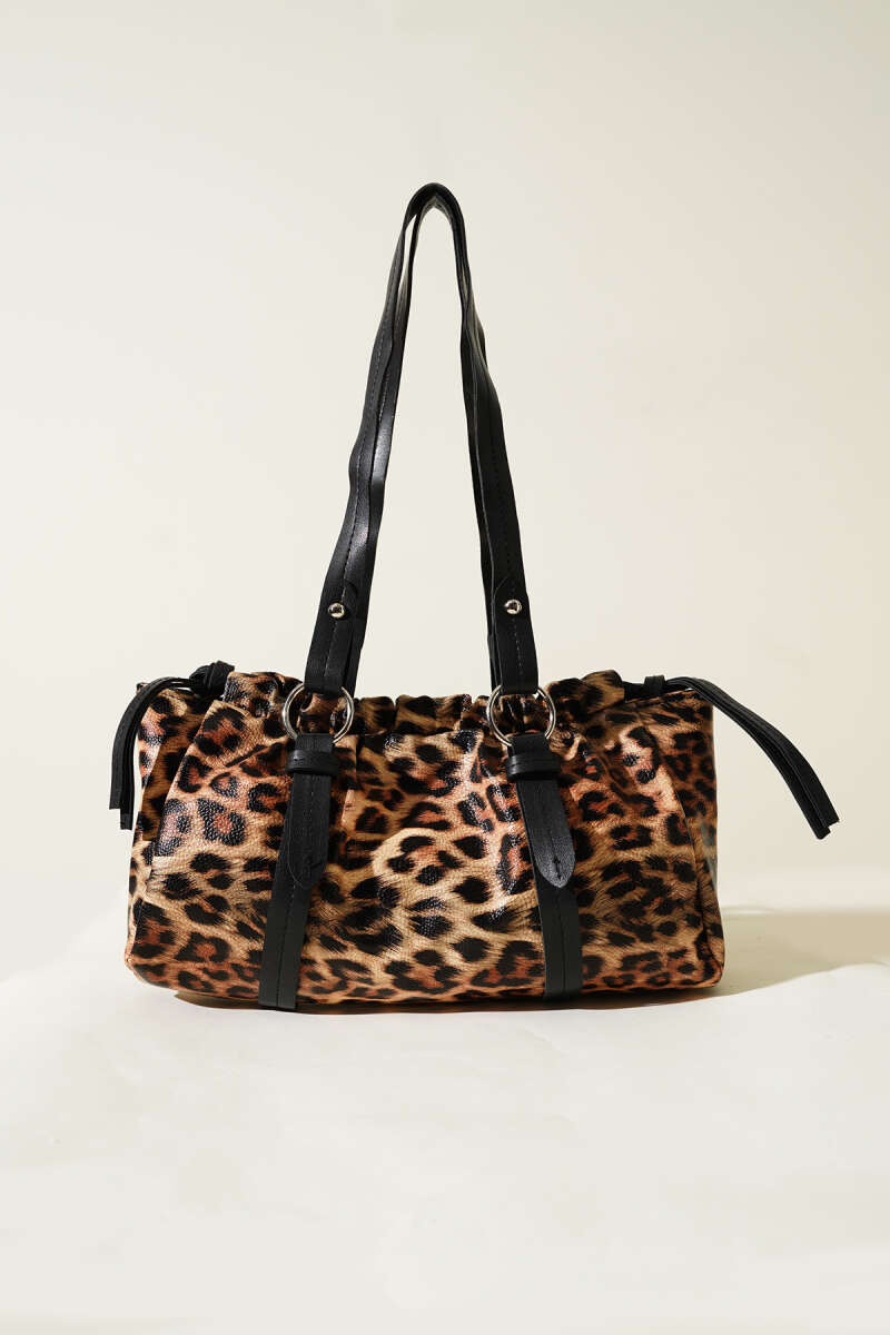 Şeritli Ayıcık Aksesuarlı Omuz Çantası Taba