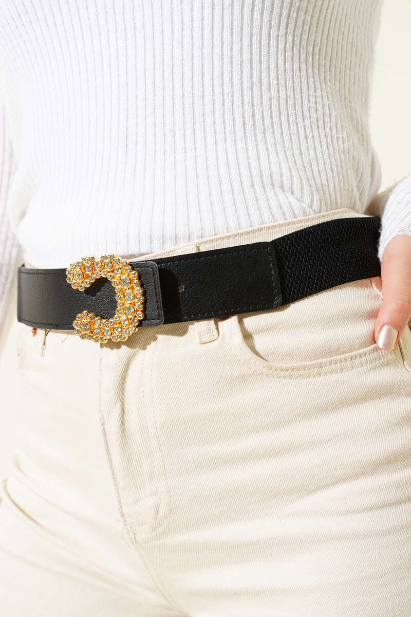 İç İçe Gold Tokalı Kemer Siyah