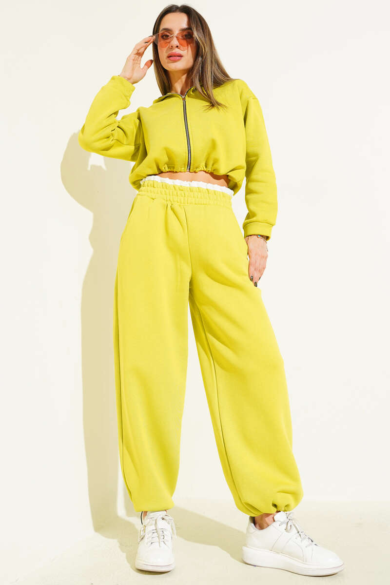 Loyşa Kapüşonlu Kısa Sweatshirt Yağ Yeşili