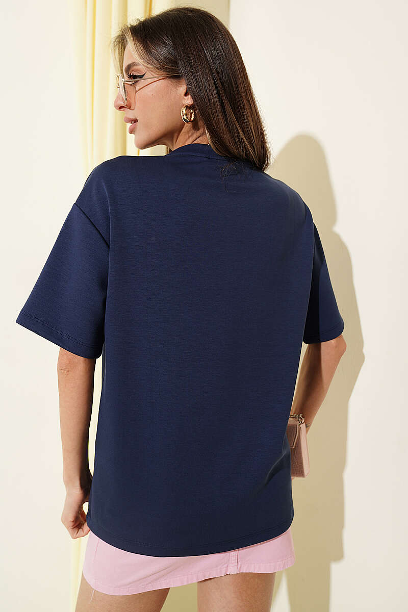 California Baskılı Modal T-shirt Lacivert
