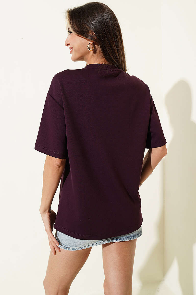 Düğmeli Kruvaze Yaka Blazer Ceket Mürdüm