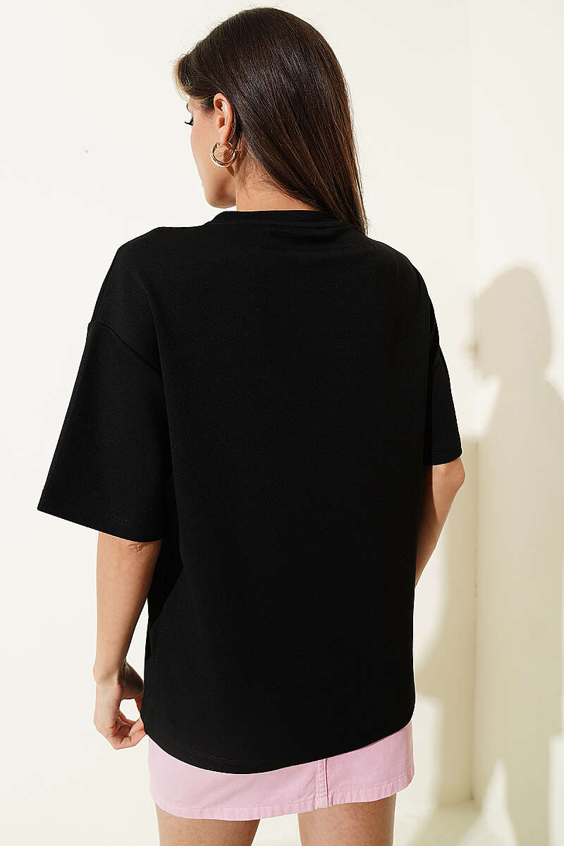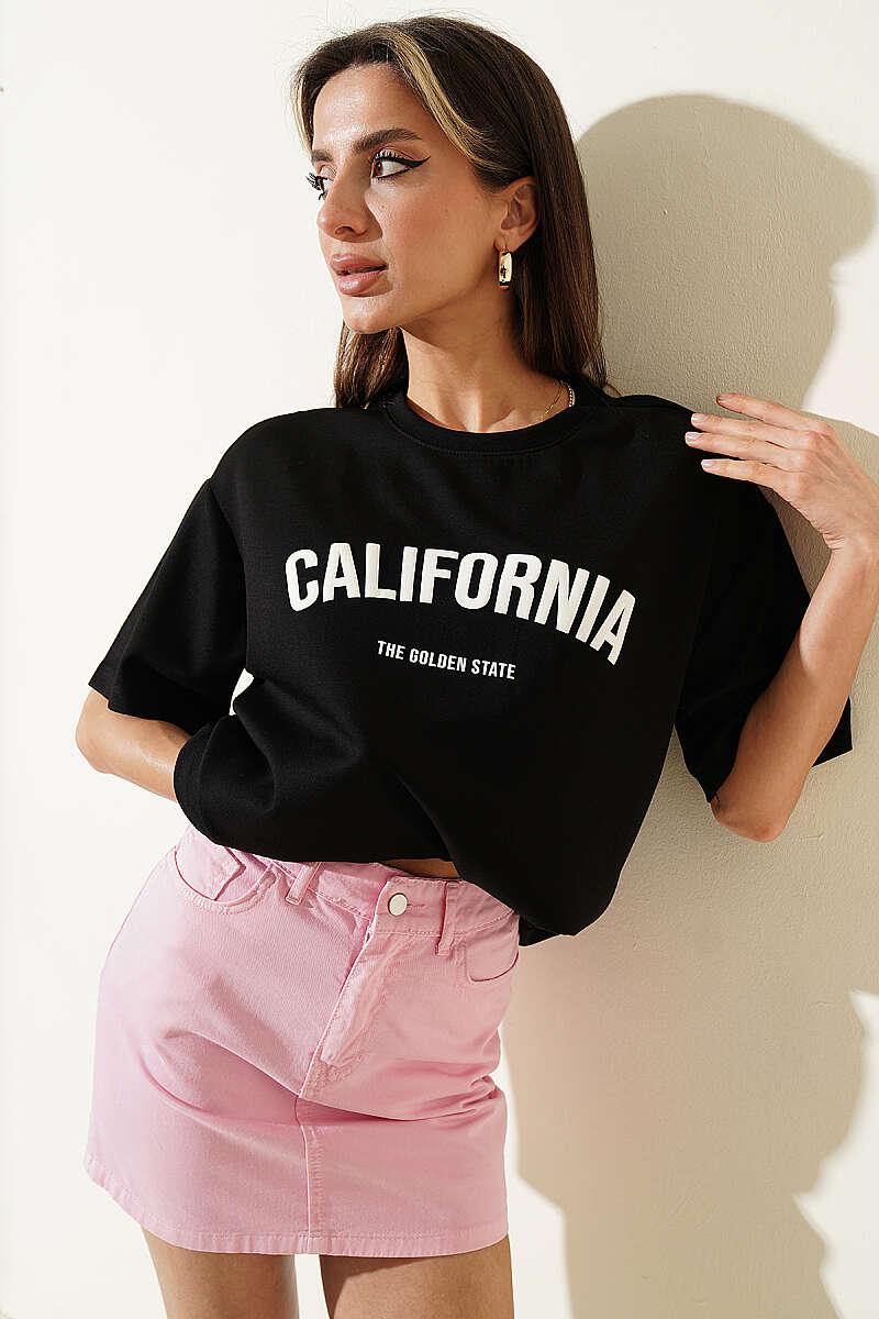 California Baskılı Modal T-shirt Siyah