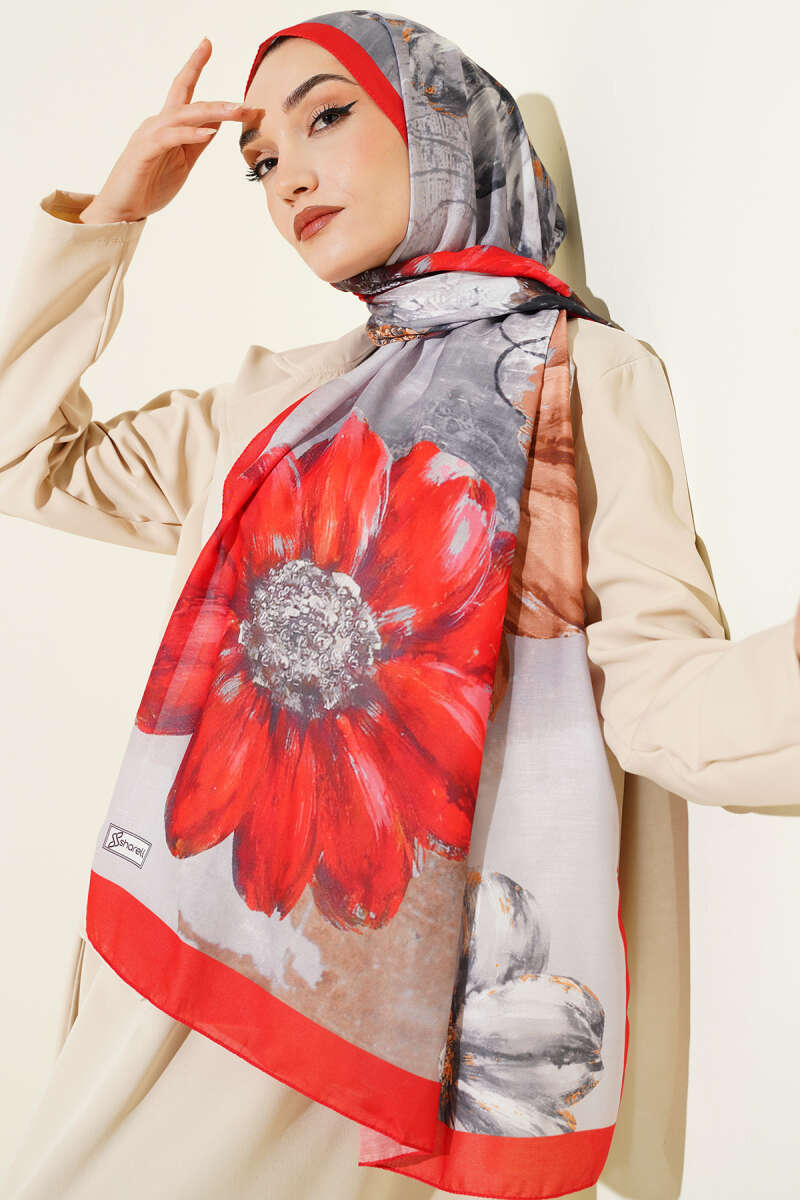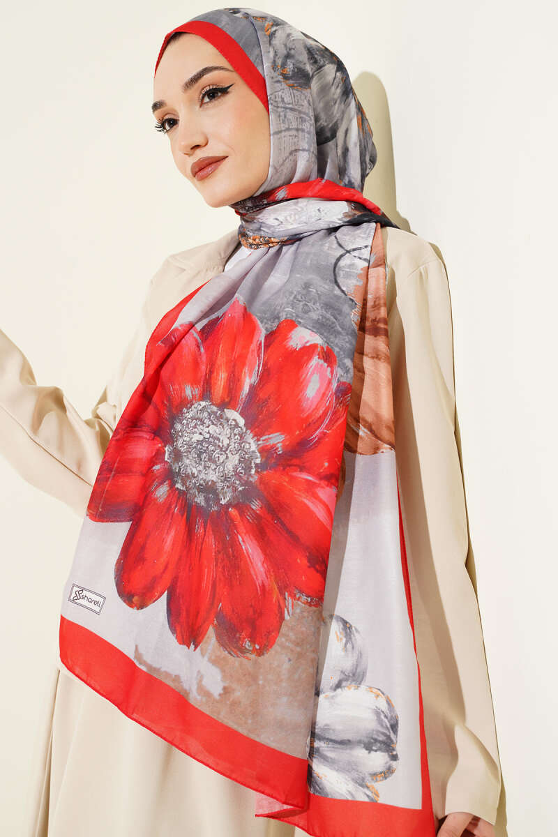 Camellia Desen Şal Kırmızı
