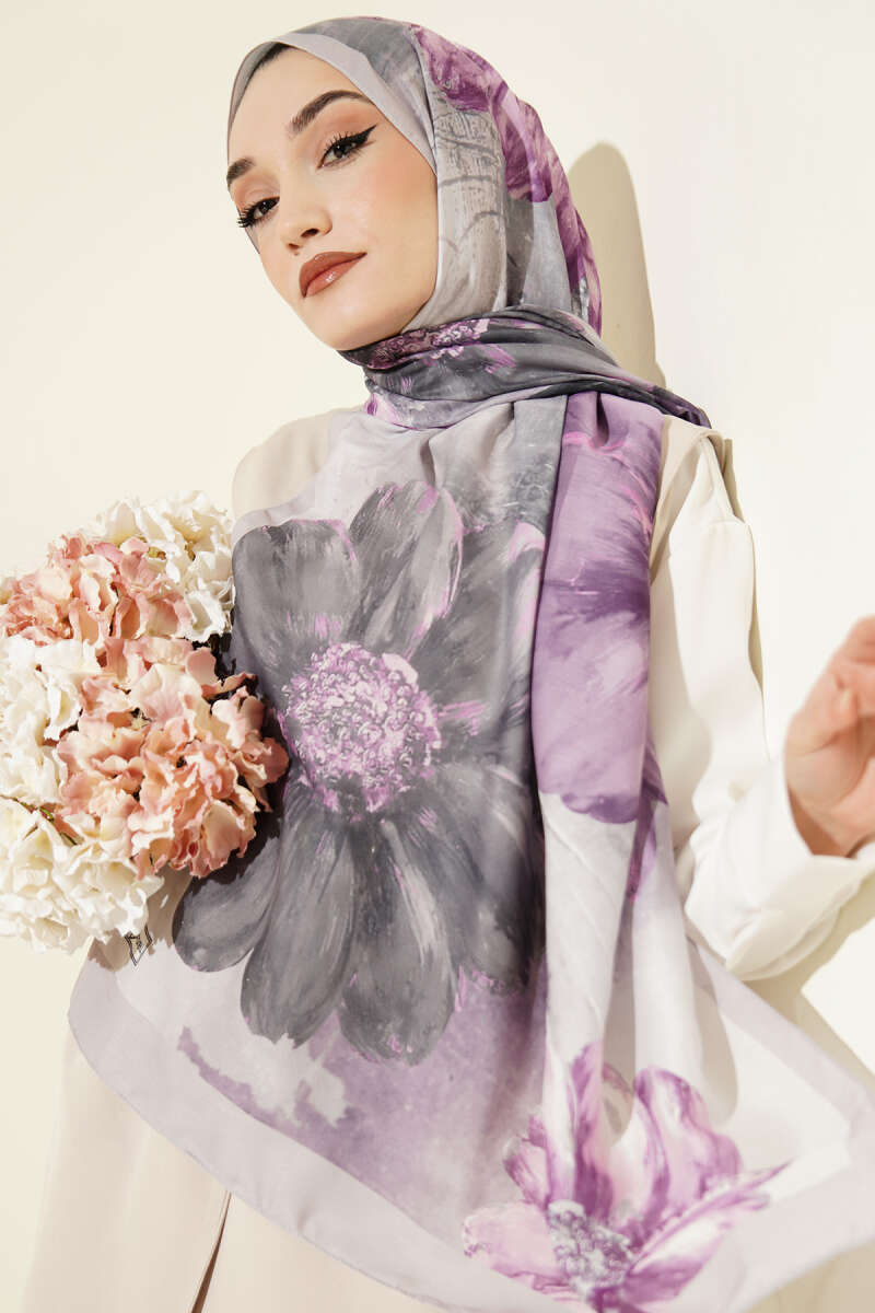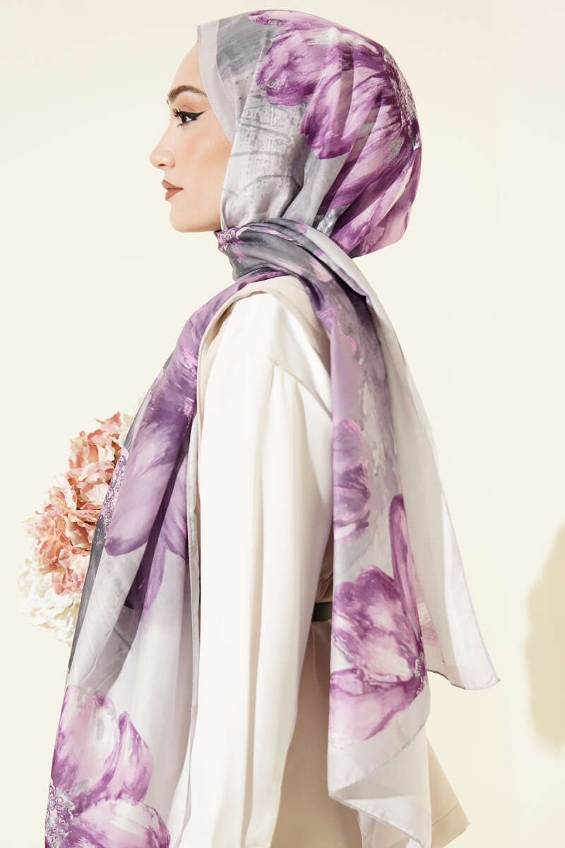 Şeritli Bambu Kraş Eşarp Koyu Lila