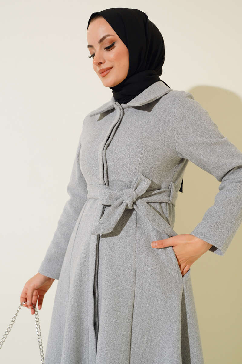 Çan Kesim Düğmeli Kaşe Kaban Gri