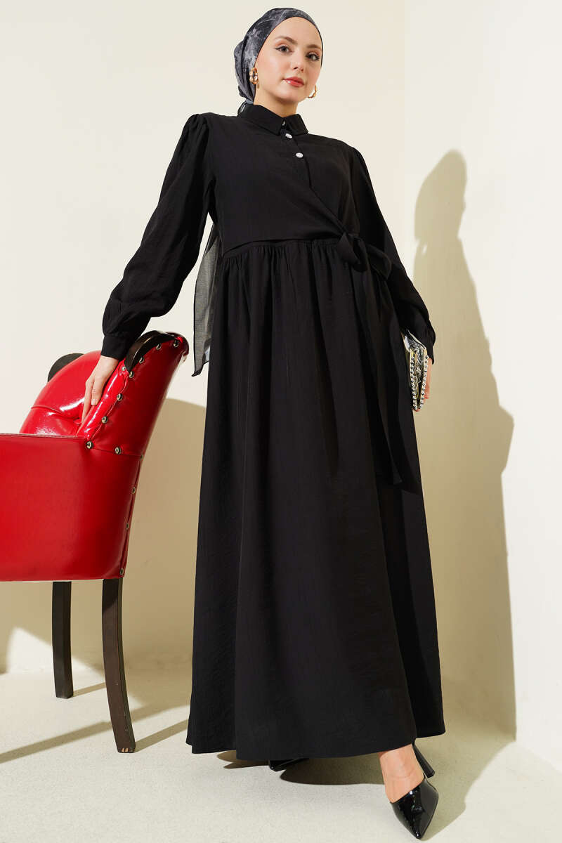 Bel Lastikli Bolerolu Terikoton Elbise Siyah