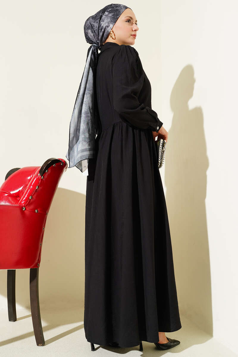 Düğmeli Kemerli Jile Elbise Siyah