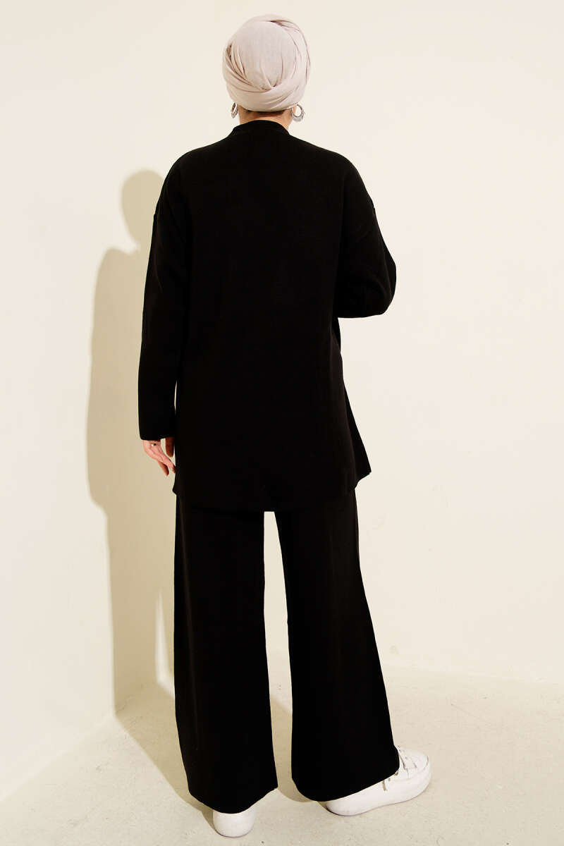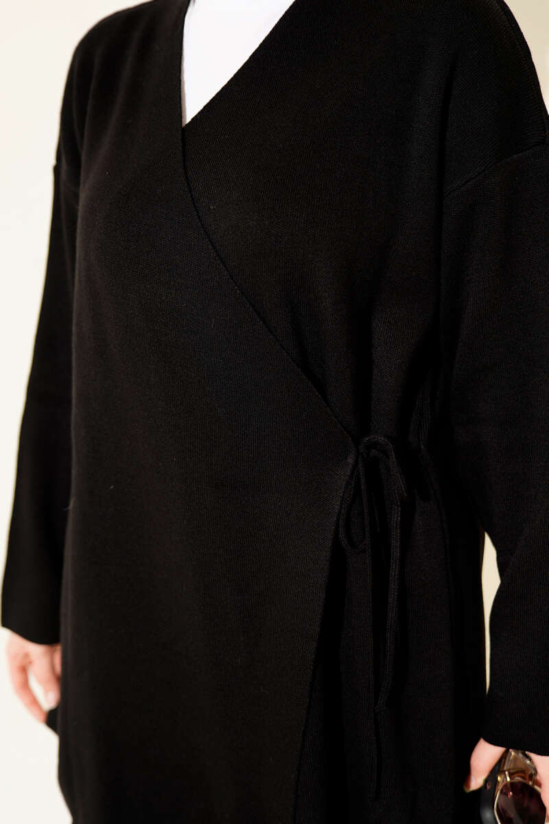 Taşlı Önü Bağlamalı Etekli İkili Takım Siyah