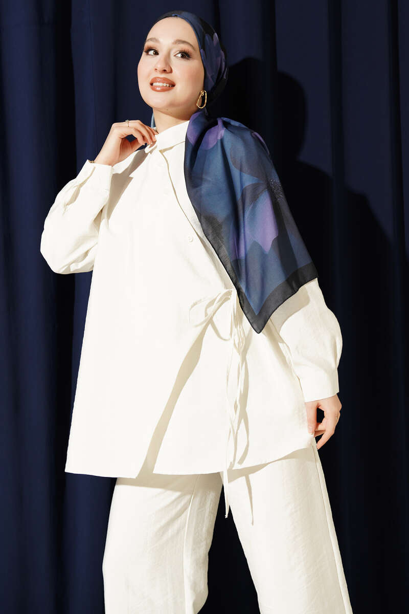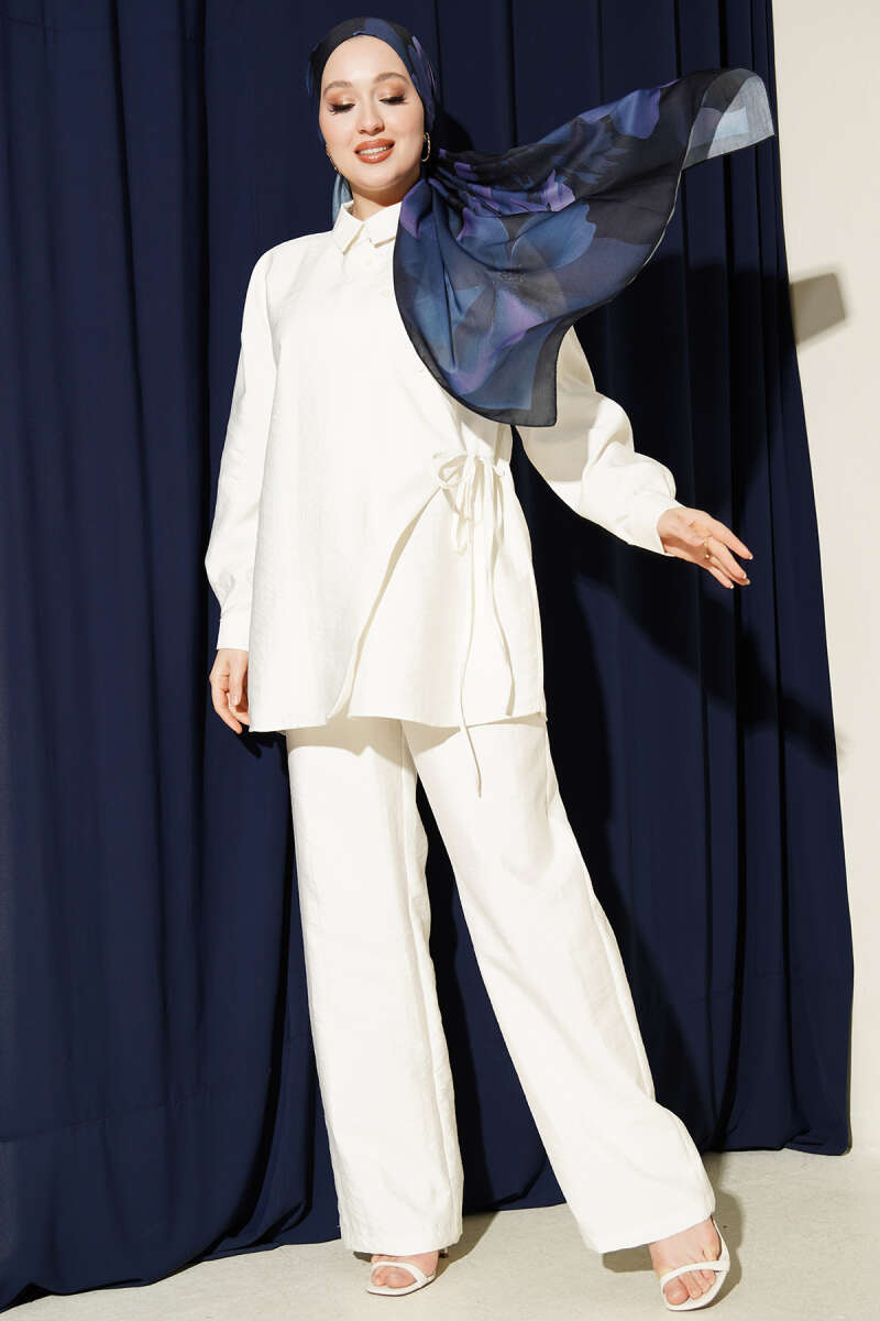 Bel Tünelli Ayrobin Tunik İkili Takım İndigo