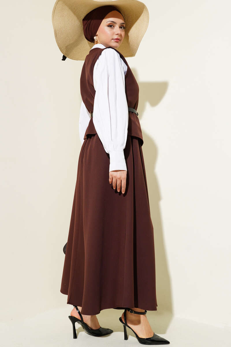 Gold Düğmeli Sakallı Kemerli Ceket Kahve