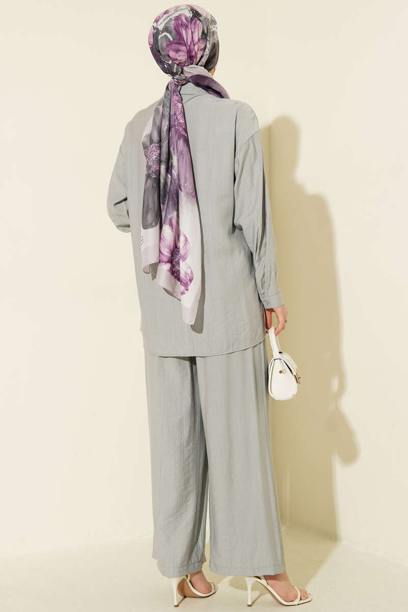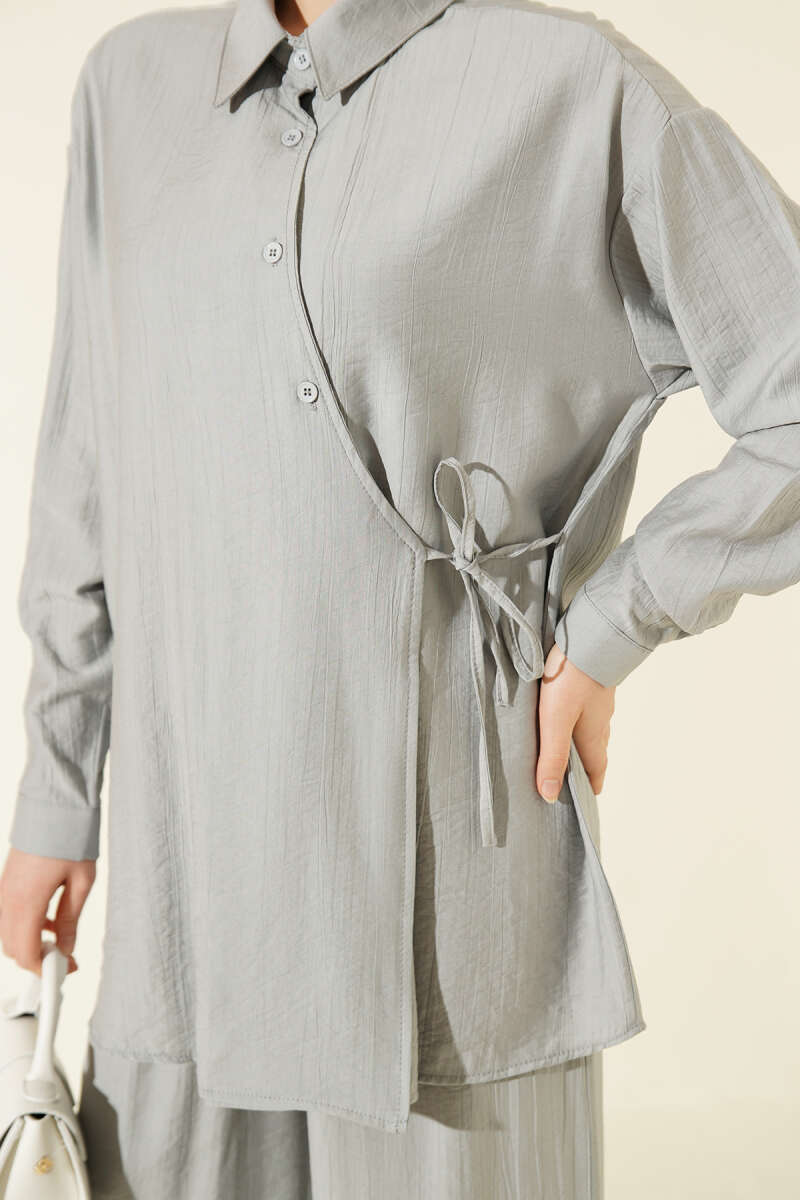 Çapraz Düğmeli Yan Bağcıklı İkili Takım Gri