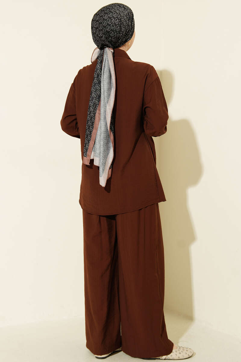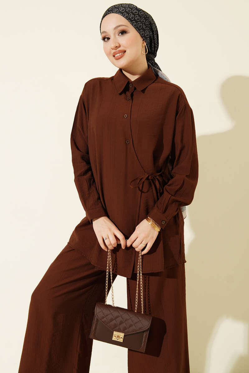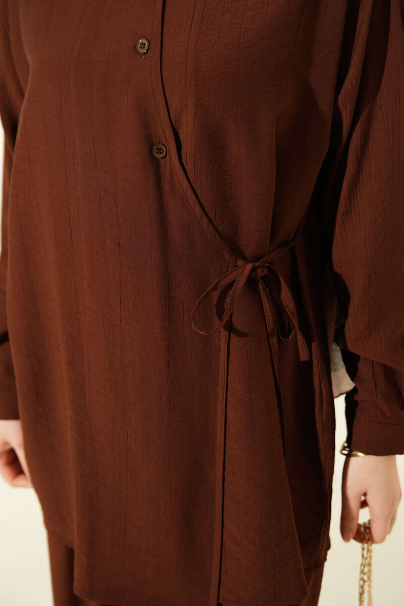 Çapraz Düğmeli Yan Bağcıklı İkili Takım Kahve