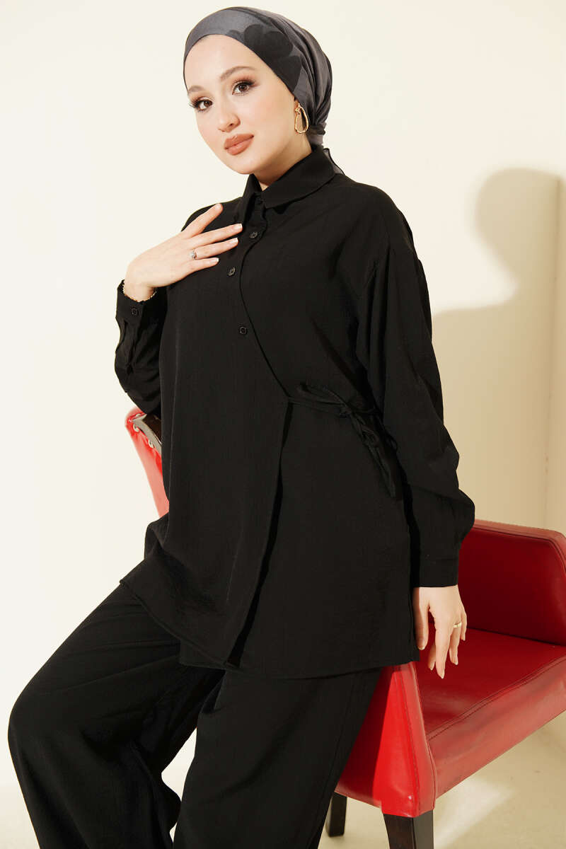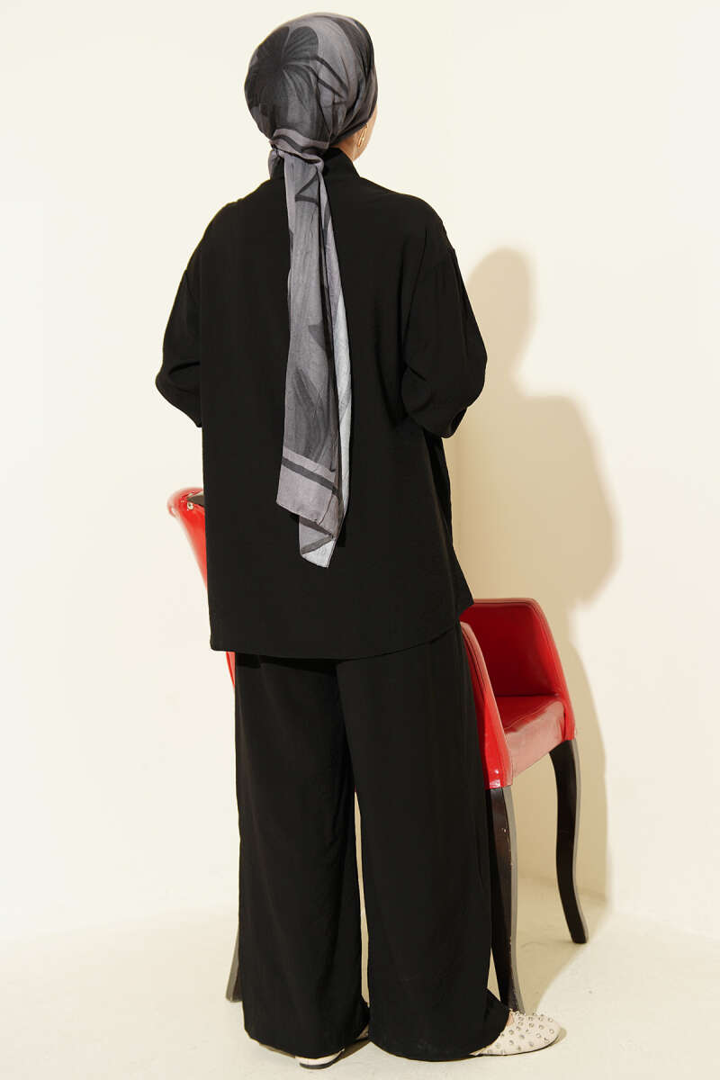 Çapraz Düğmeli Yan Bağcıklı İkili Takım Siyah
