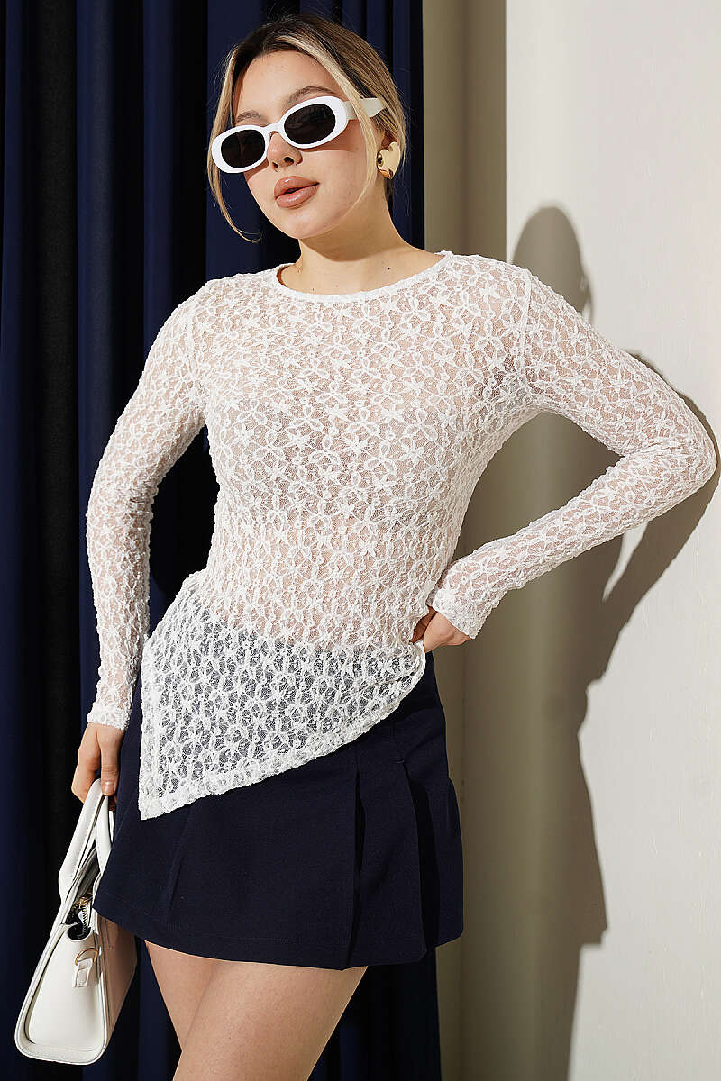 Çapraz Geçişli Dantel Bluz Beyaz