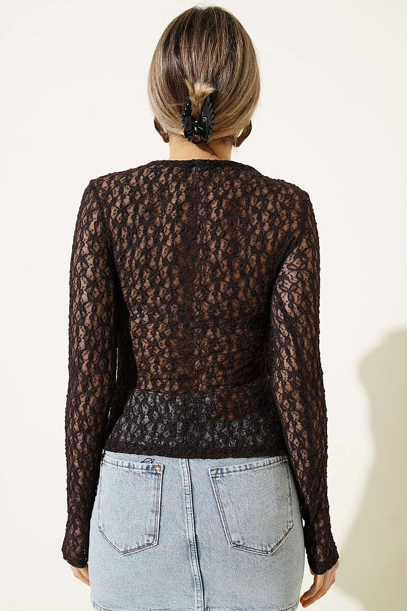 Çapraz Geçişli Dantel Bluz Kahve