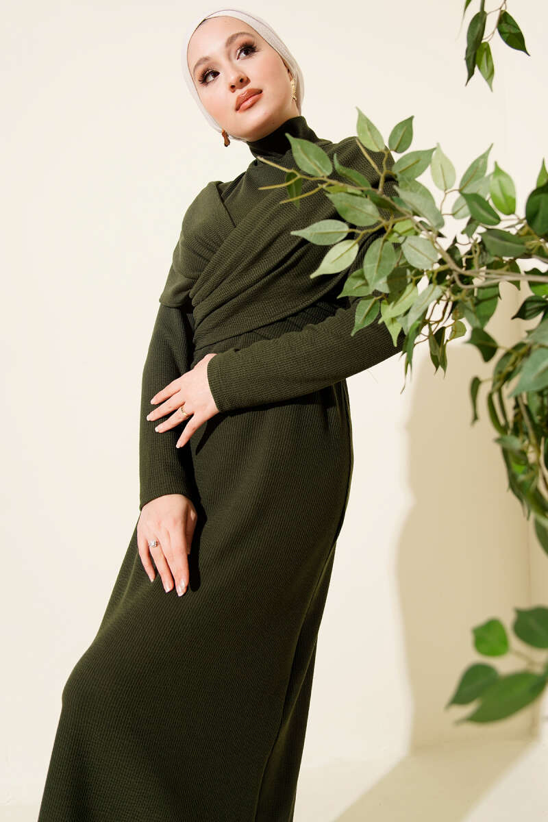 Çapraz Geçişli Fitilli Elbise Lacivert