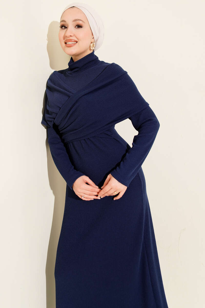 Bilek Ribanalı Kapüşonlu Buklet Hırka Lacivert