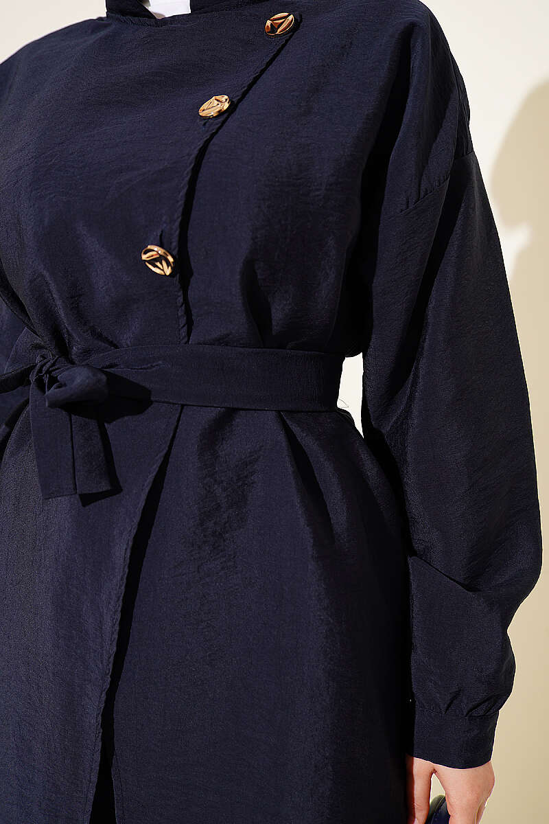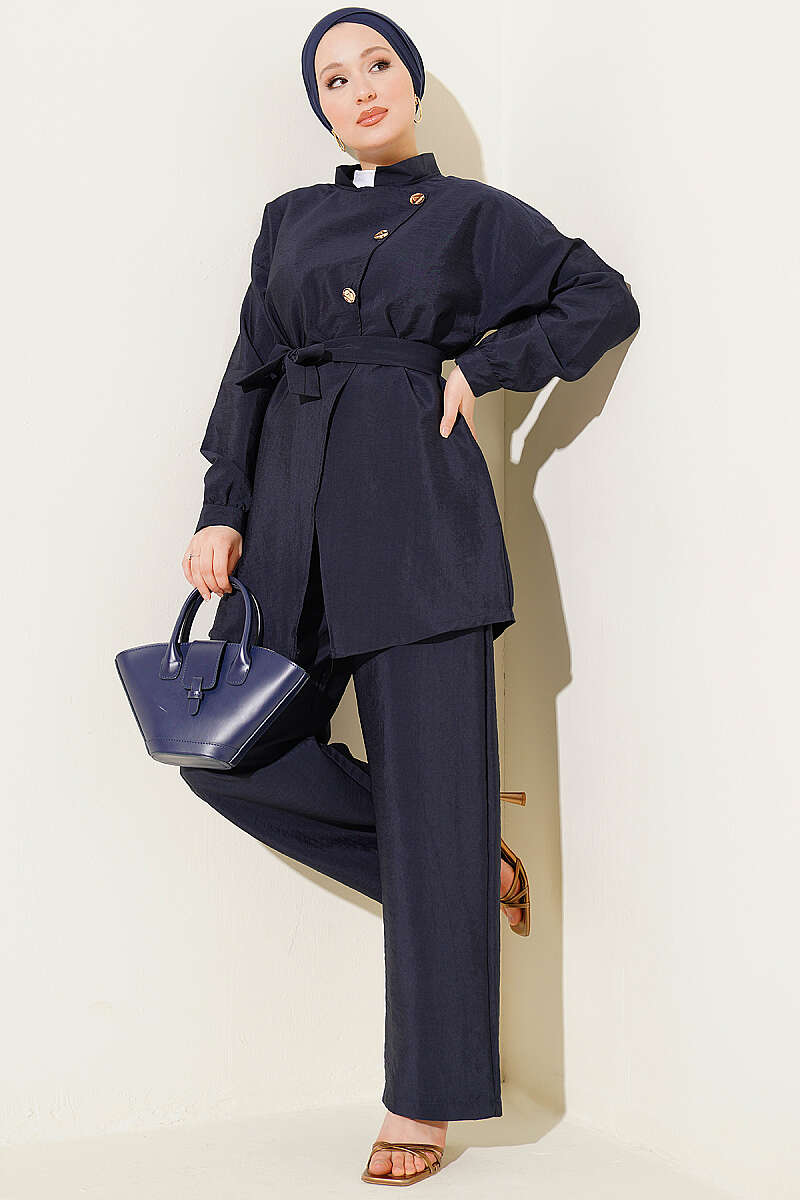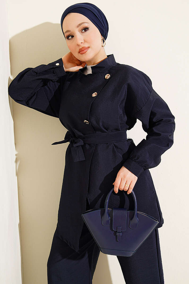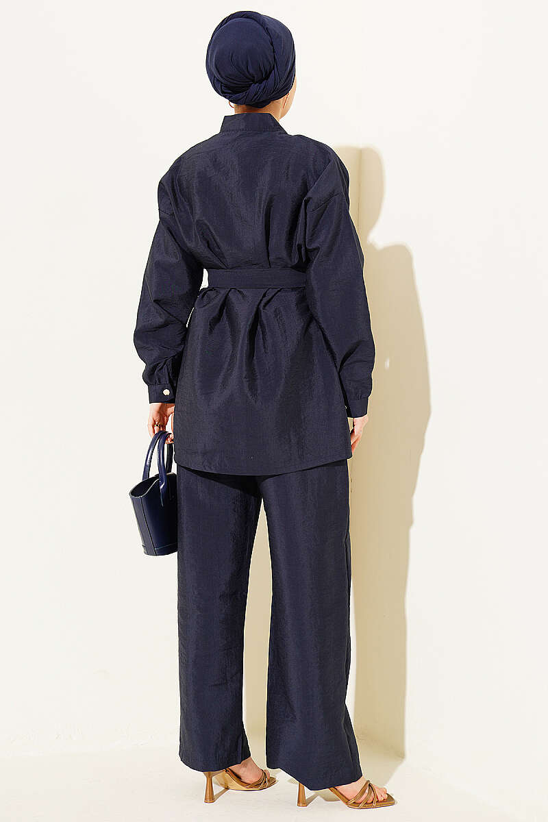 Çapraz Gold Düğmeli Kuşaklı İkili Takım Lacivert