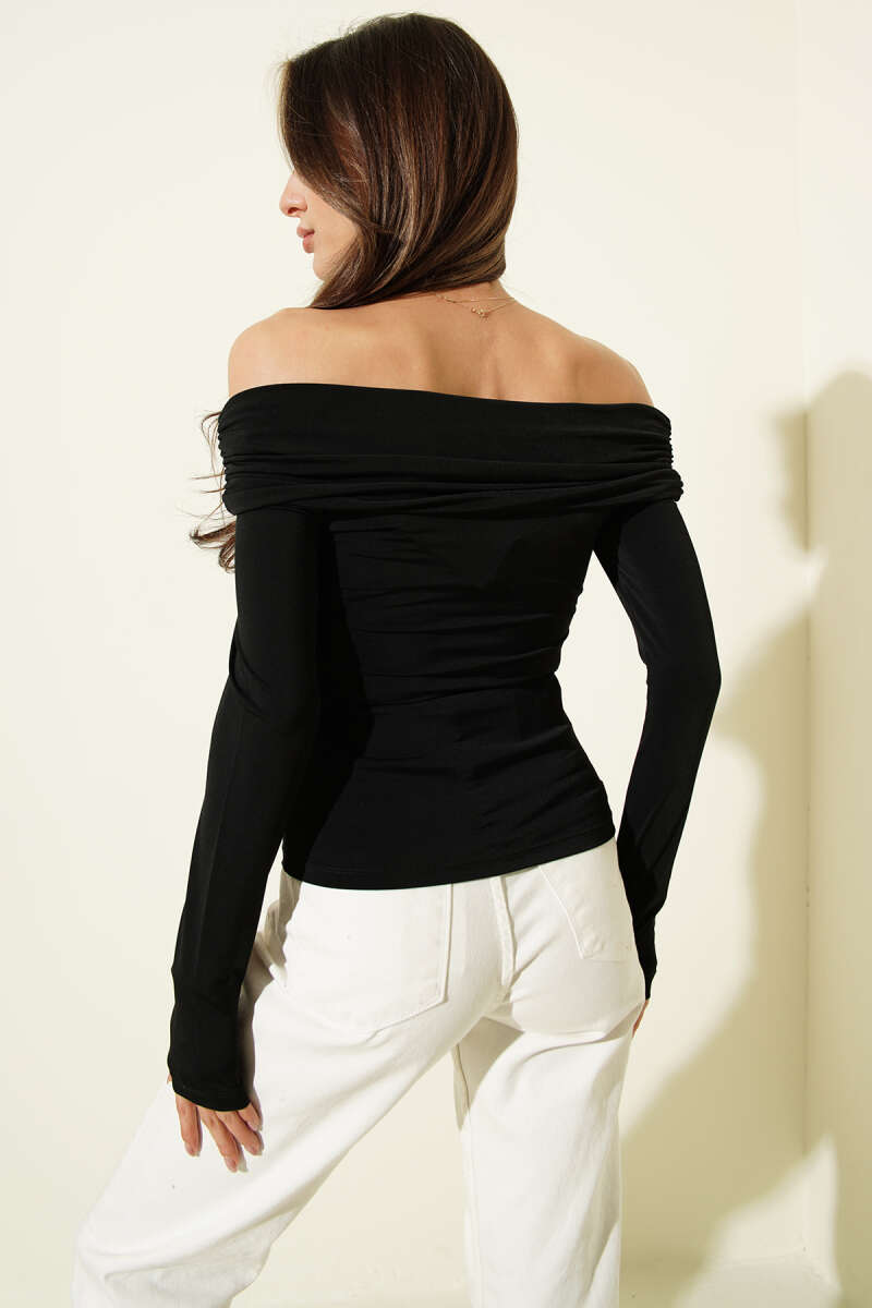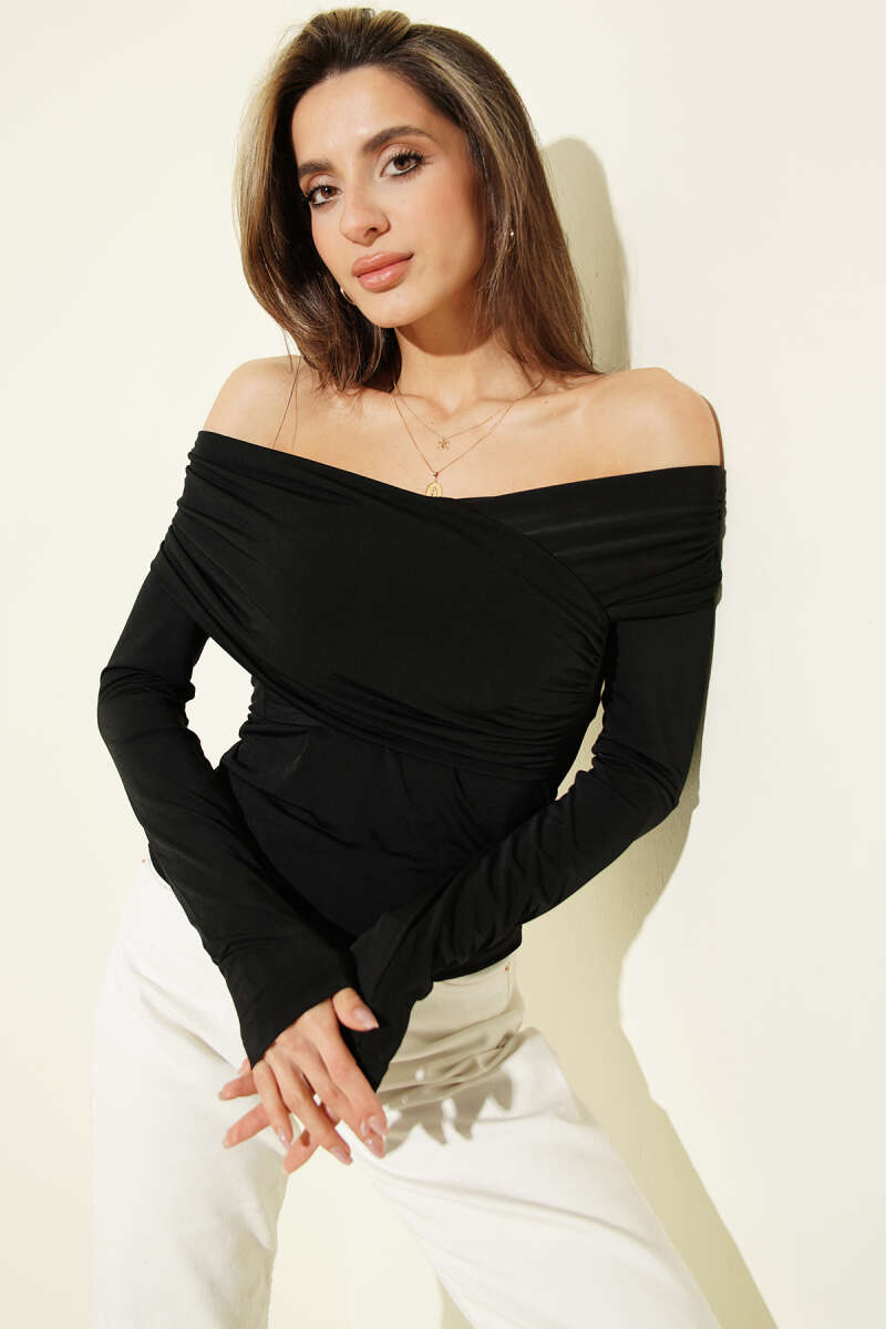 Çapraz Madonna Yaka Sandy Bluz Siyah