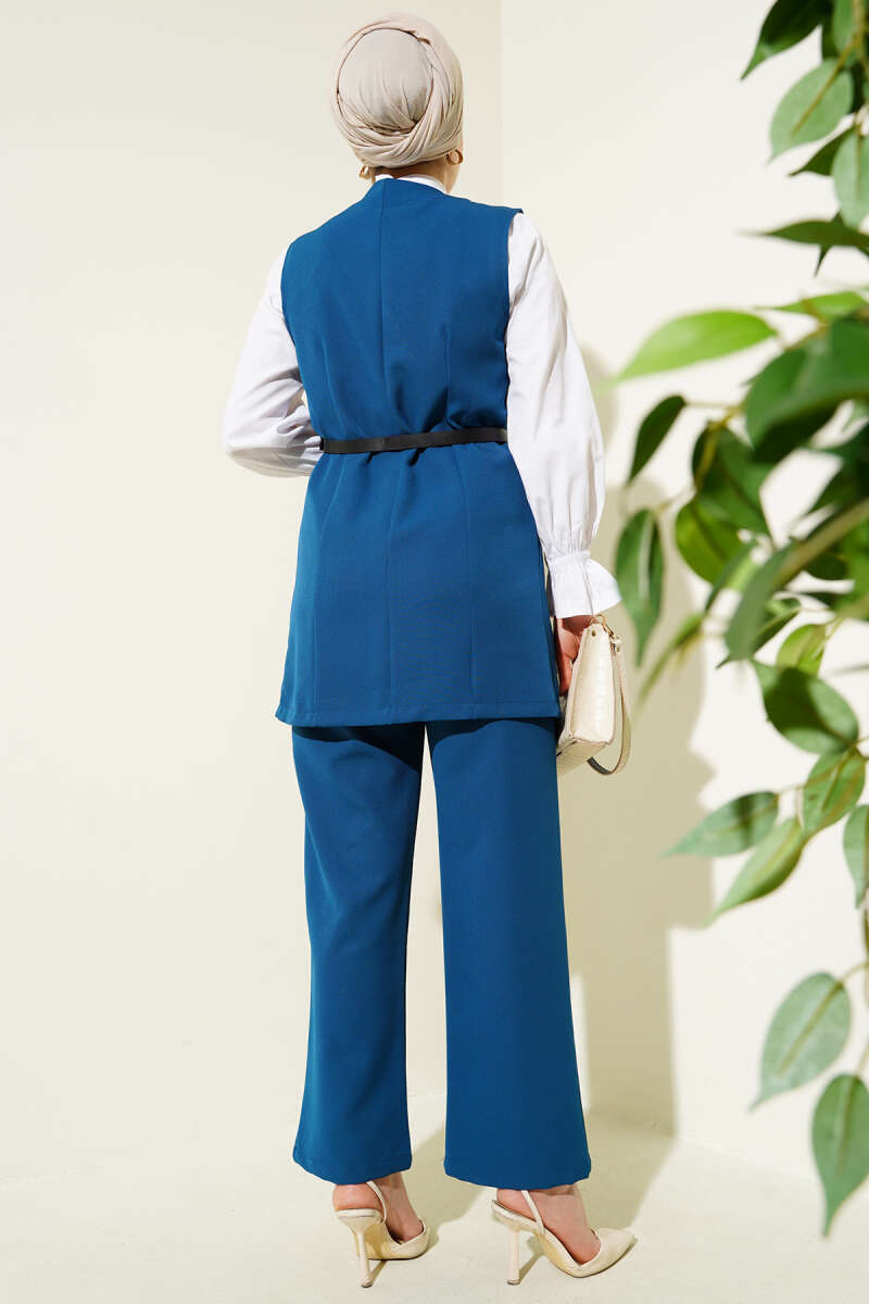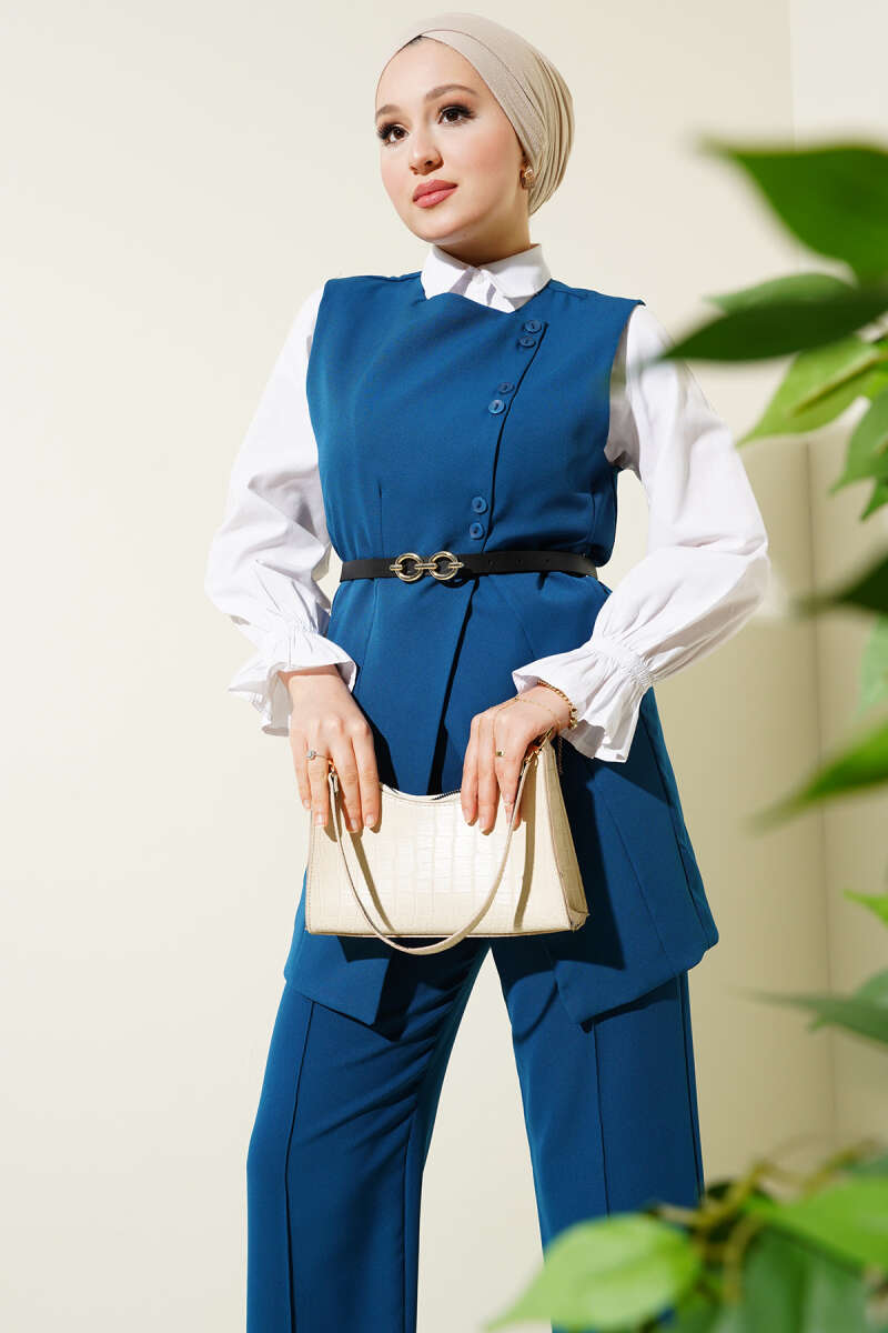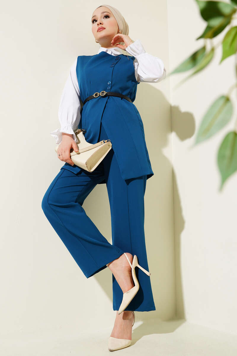 Asimetrik Kesim Bisiklet Yaka İkili Takım Mavi