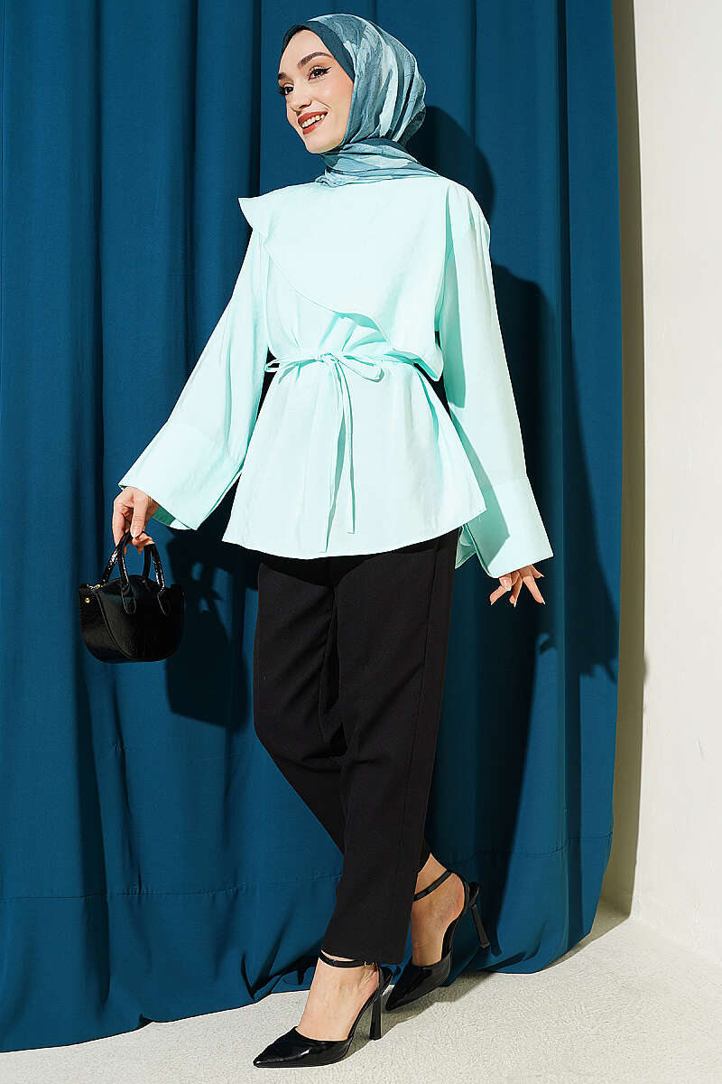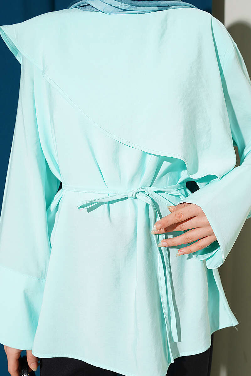 Çapraz Pelerinli Modal Tunik Turkuaz