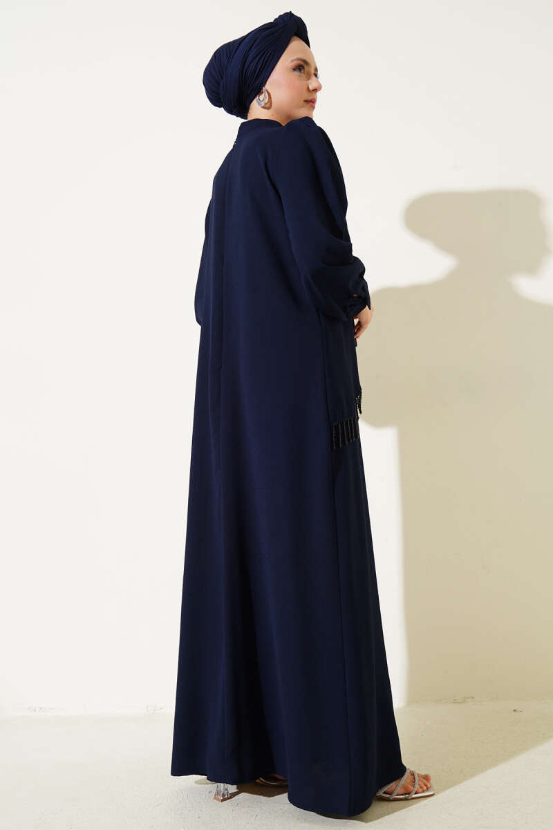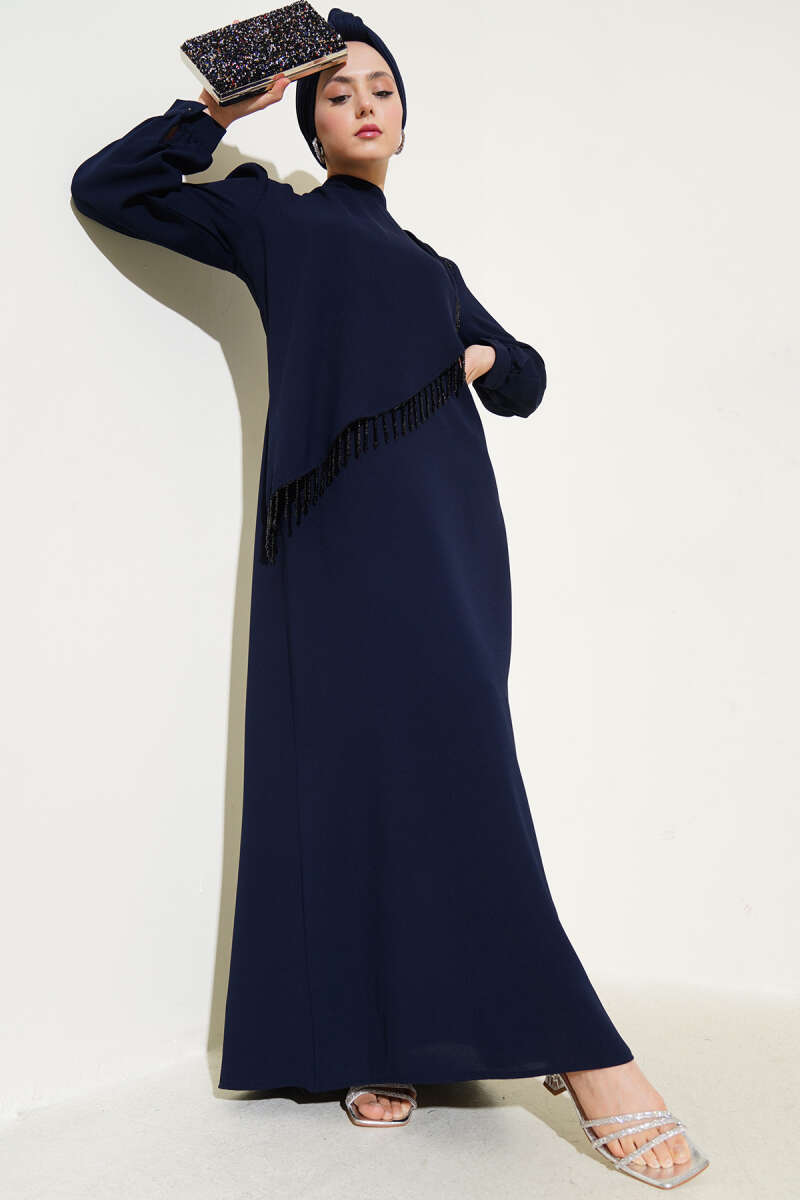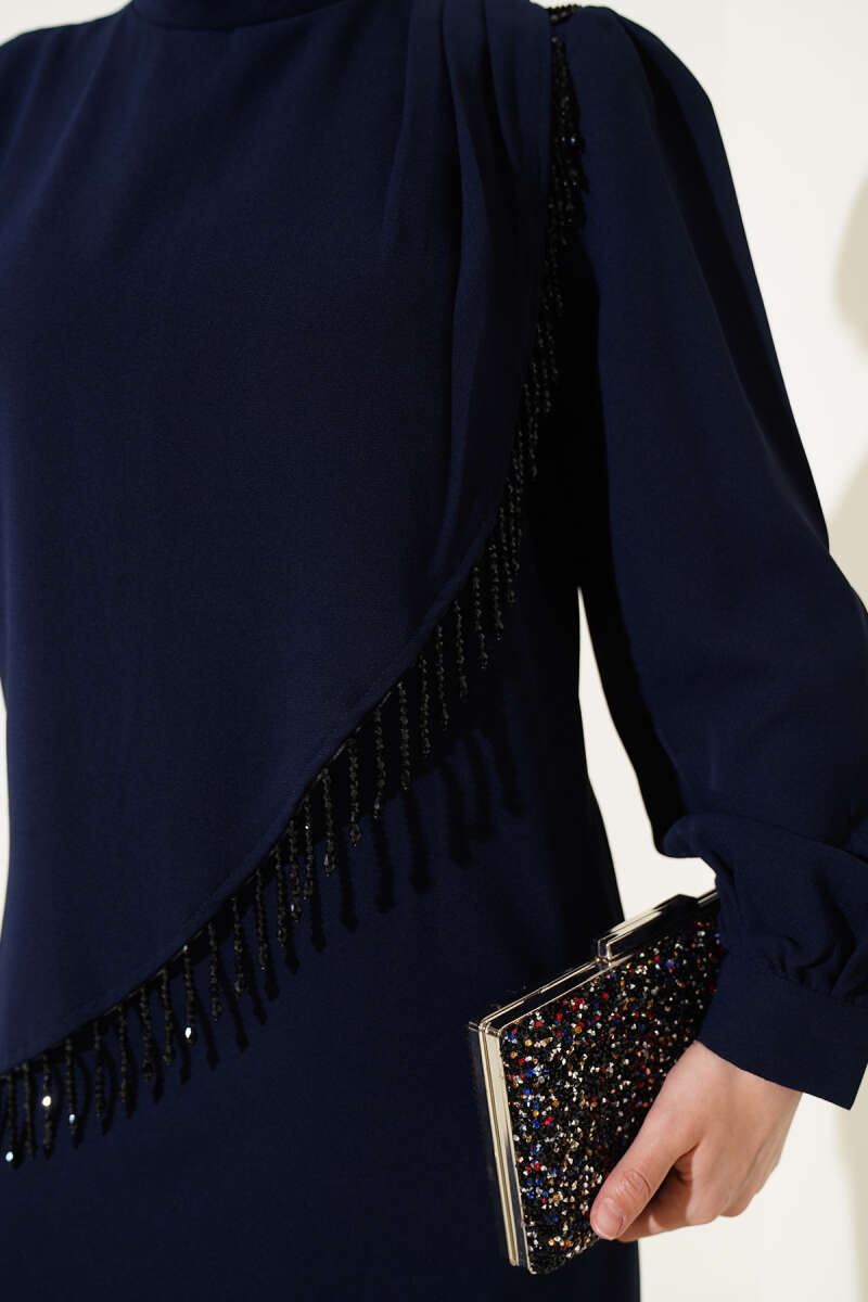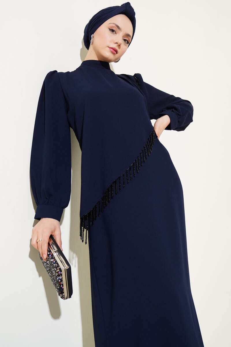 Çapraz Taş Detaylı Büyük Beden Elbise Lacivert