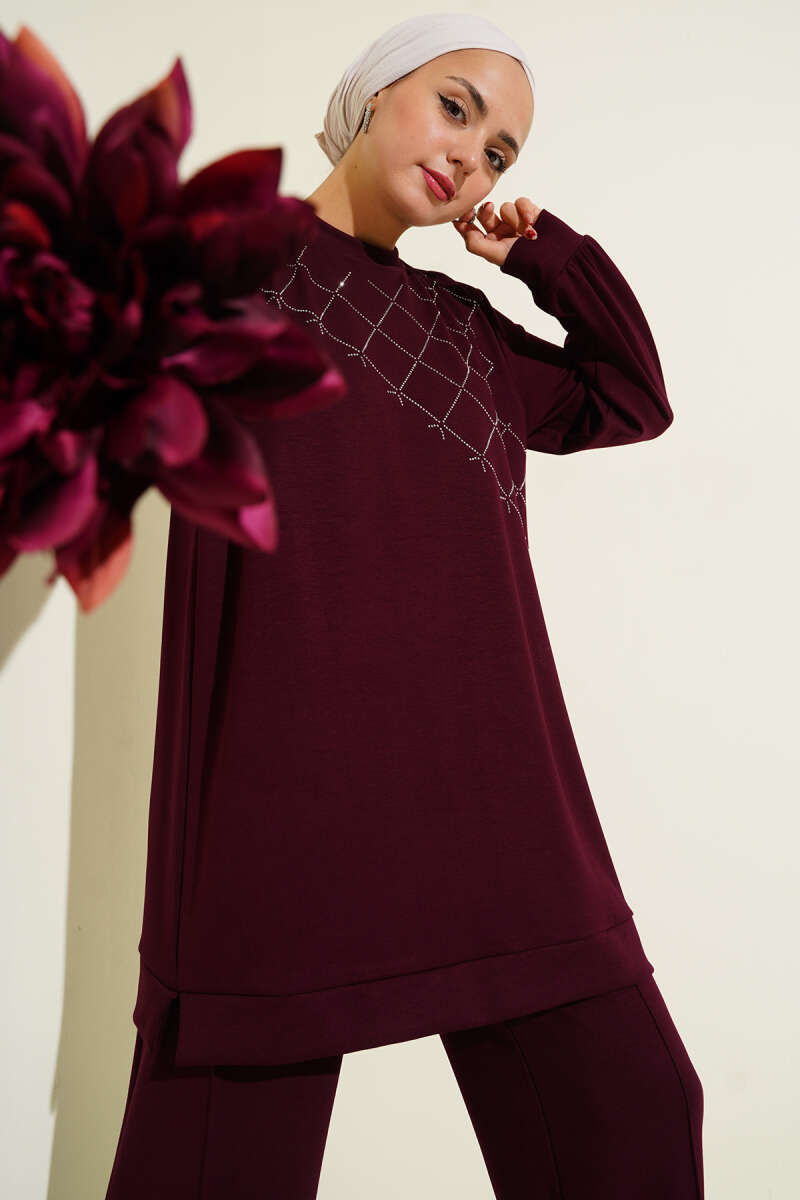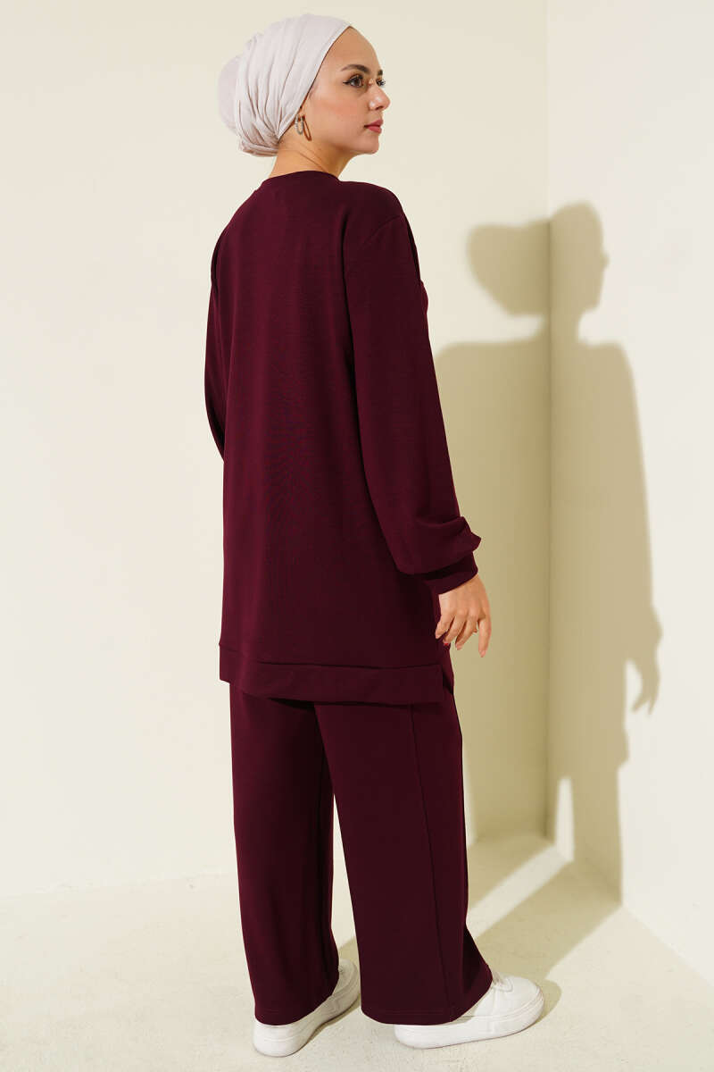 Balon Kol Basic Triko İkili Takım Bordo