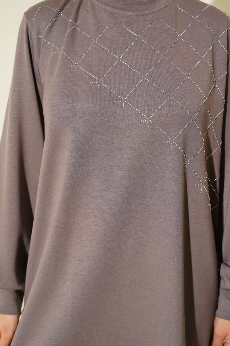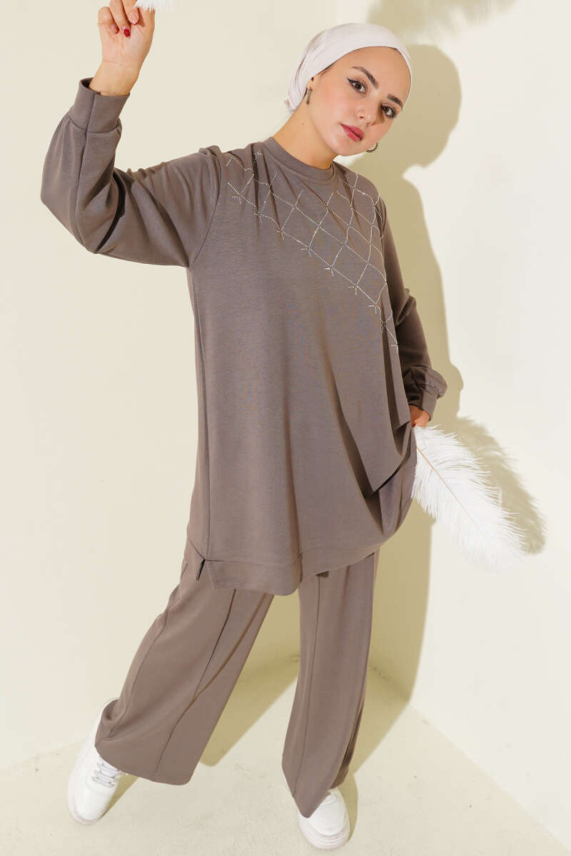 Çapraz Taş Süslemeli İkili Takım Mürdüm