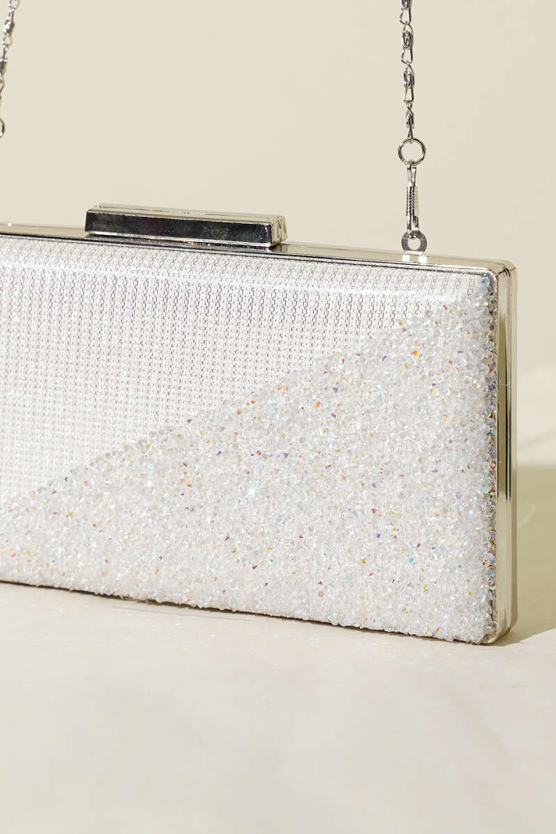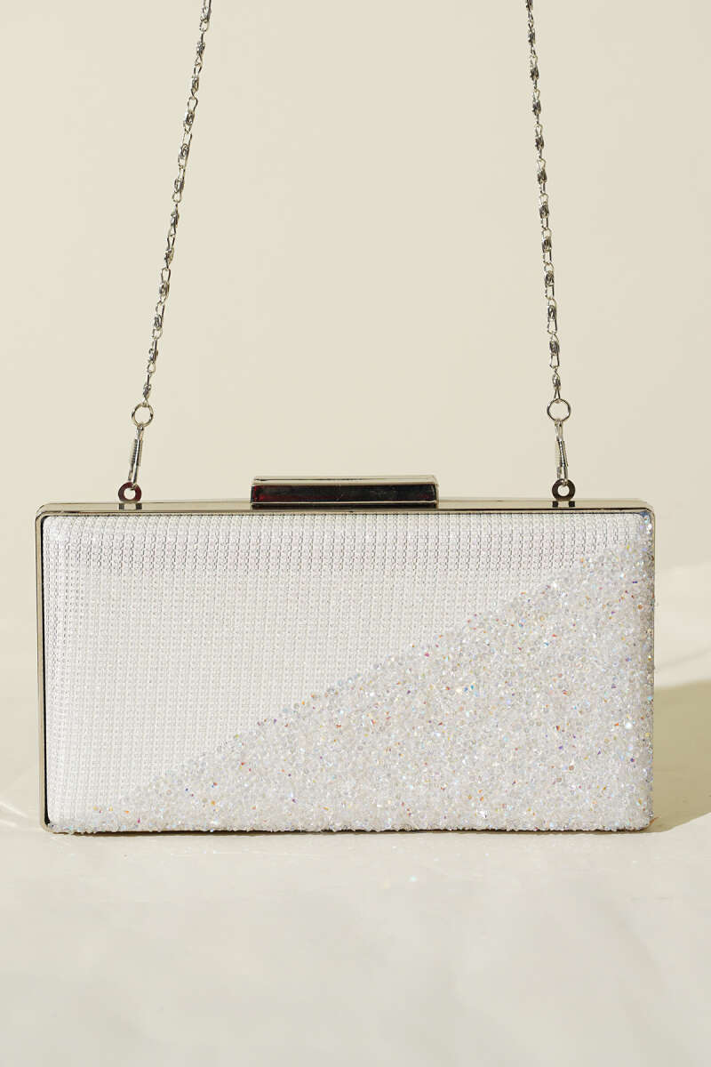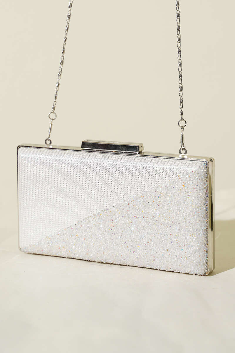 Çapraz Taşlı Dikdörtgen Abiye Çanta Beyaz
