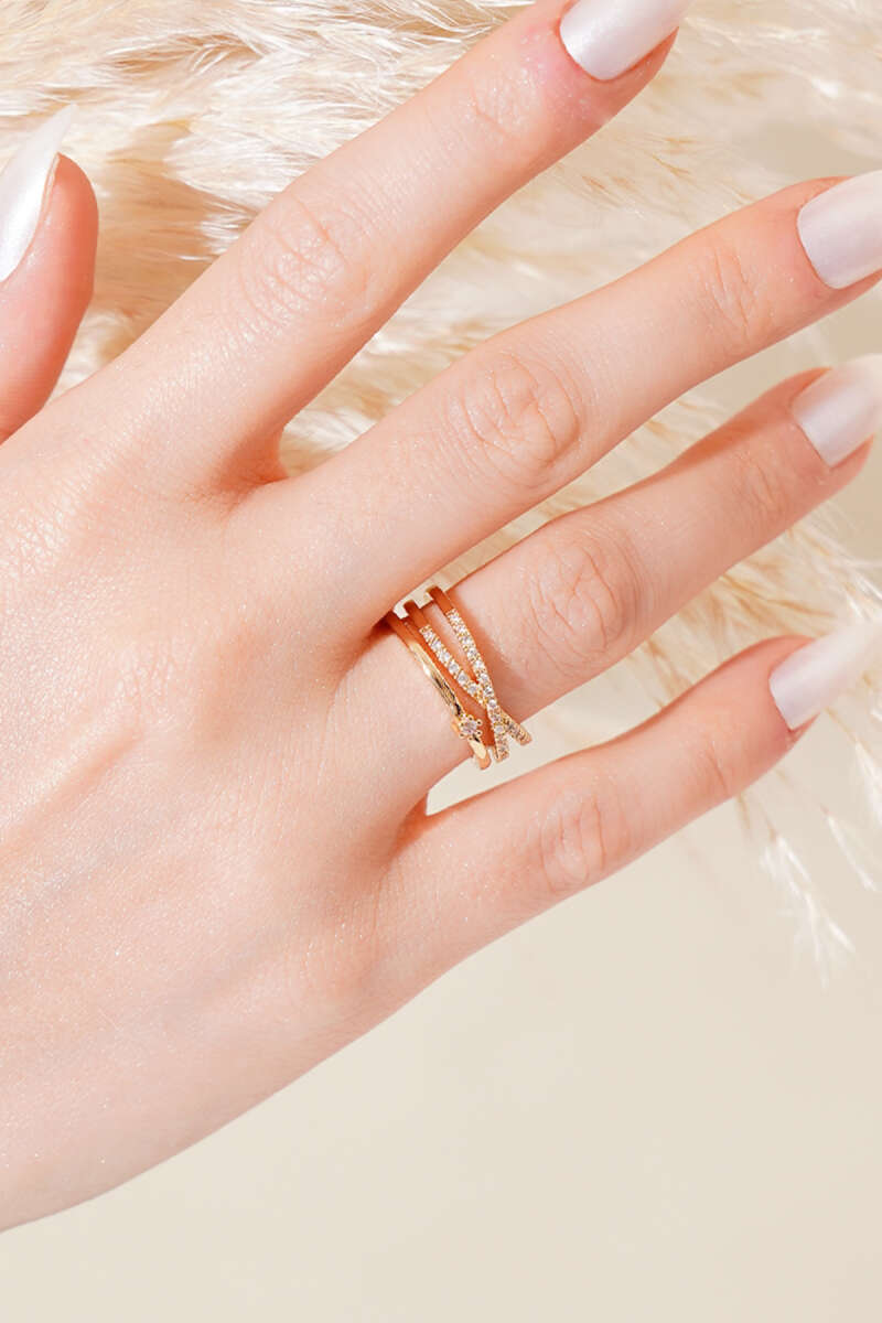Çapraz Tek Taşlı Yüzük Gold