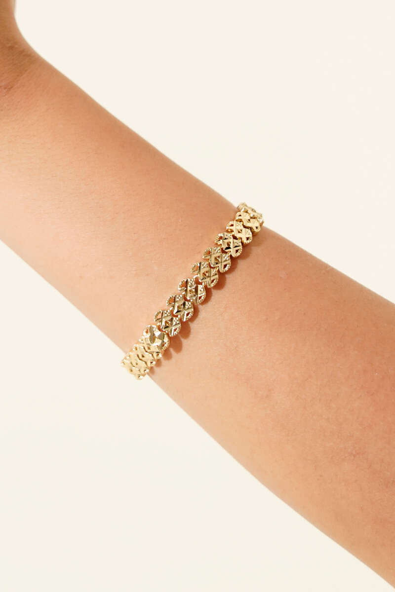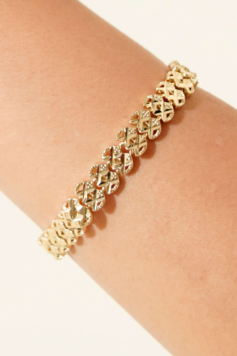 Gelince Haber VerPazarium kalite ve güvencesiyle beğenilerinize sunulan Çarpı Şeritli Bileklik Gold, oldukça uygun bir aksesuar. Farklı kombinler ile kolaylıkla uyum sağlayacak olan Çarpı Şeritli Bileklik Gold, kaliteli ve dayanıklı malzemesi ile uzun yıllar en şık kıyafetlerinizi mükemmel bir şekilde tamamlayacak!