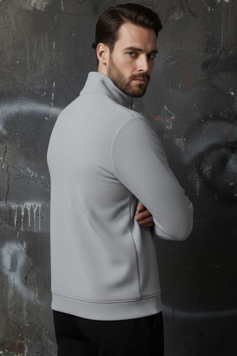 Üç İplik Yarım Fermuarlı Erkek Sweatshirt Ekru