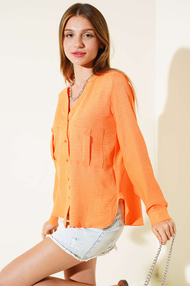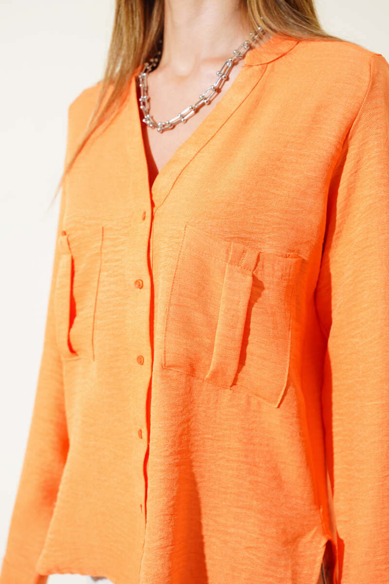 Cebi Düğmeli Salaş Gömlek Oranj