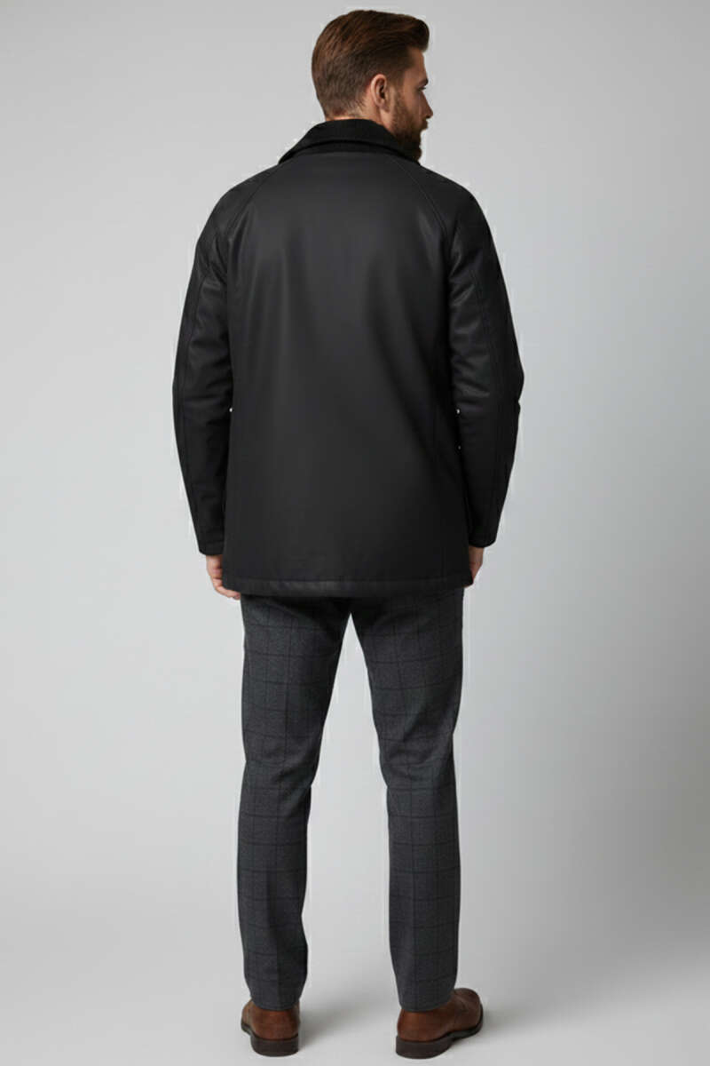 Kol Manşetli Erkek Deri Mont Siyah