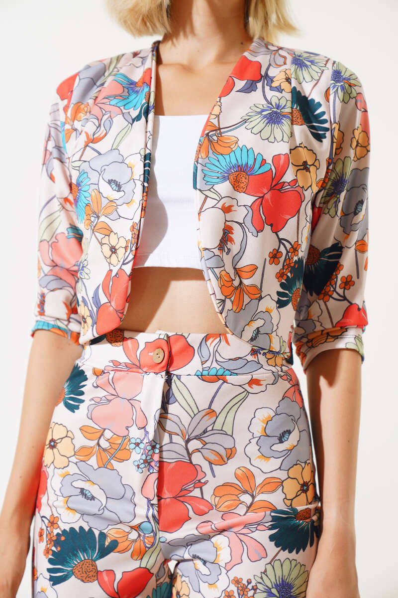 Taşlı Fermuarlı Kısa Triko Hırka Taş