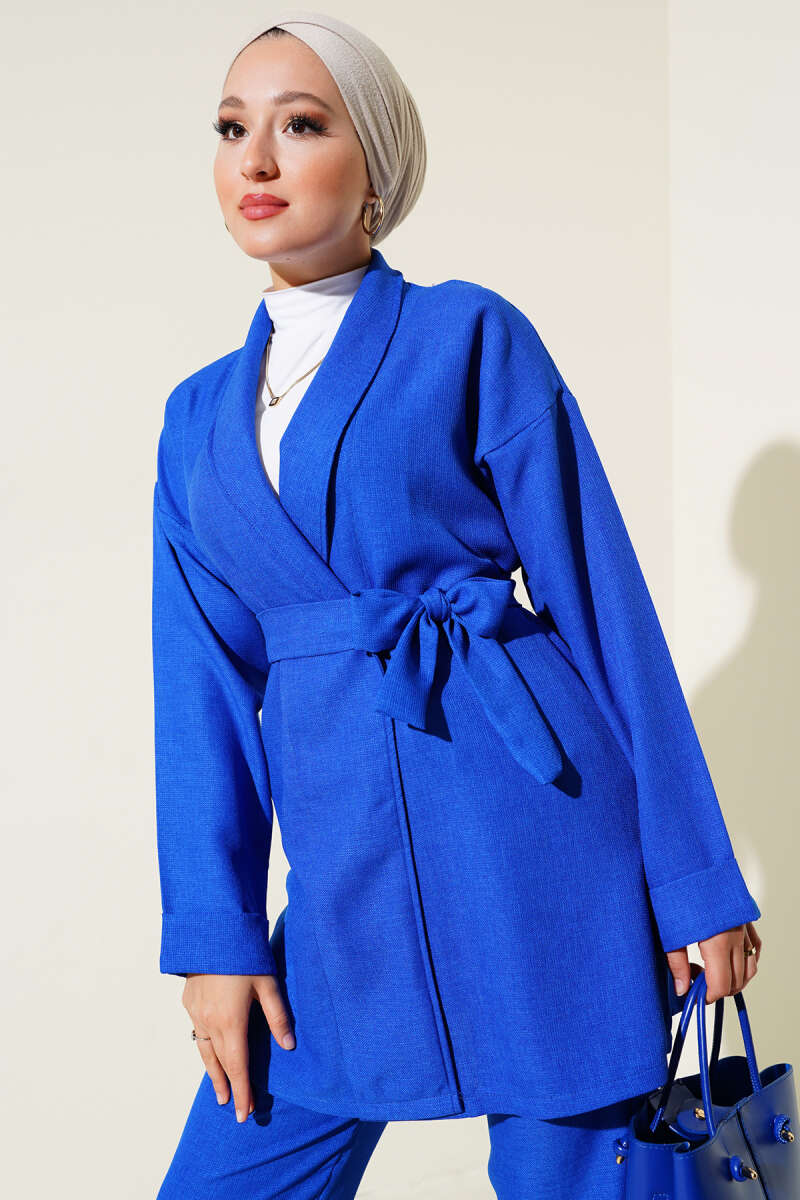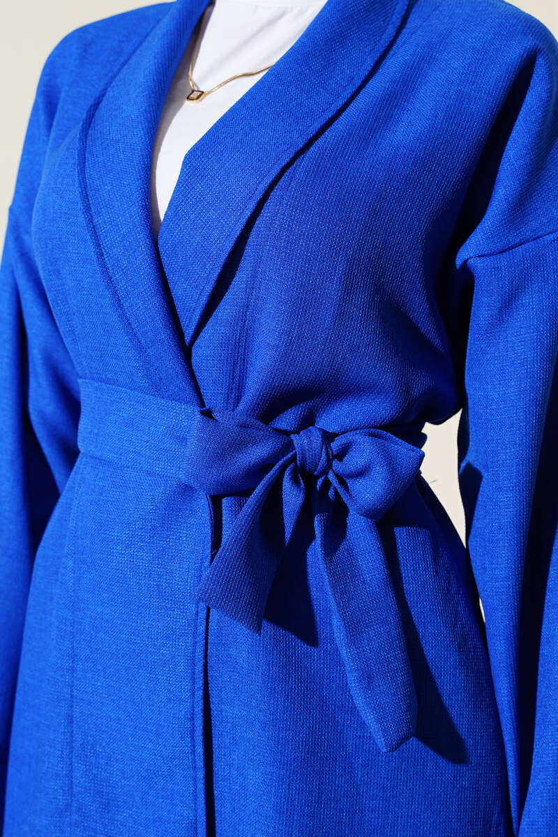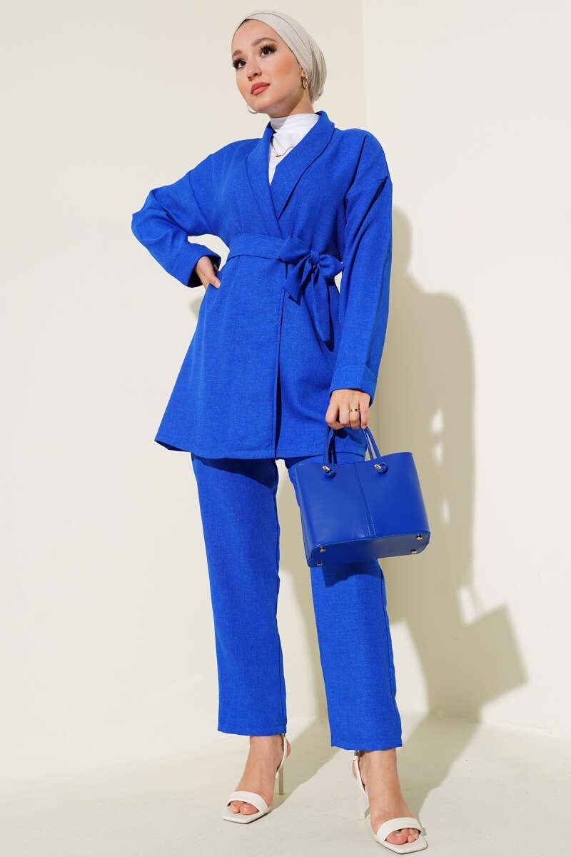 Ceketi Bel Kuşaklı İkili Takım Saks