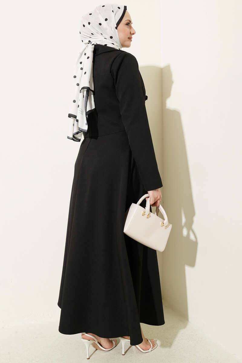 Ekoseli Yaka Bağlamalı Etekli Takım Siyah