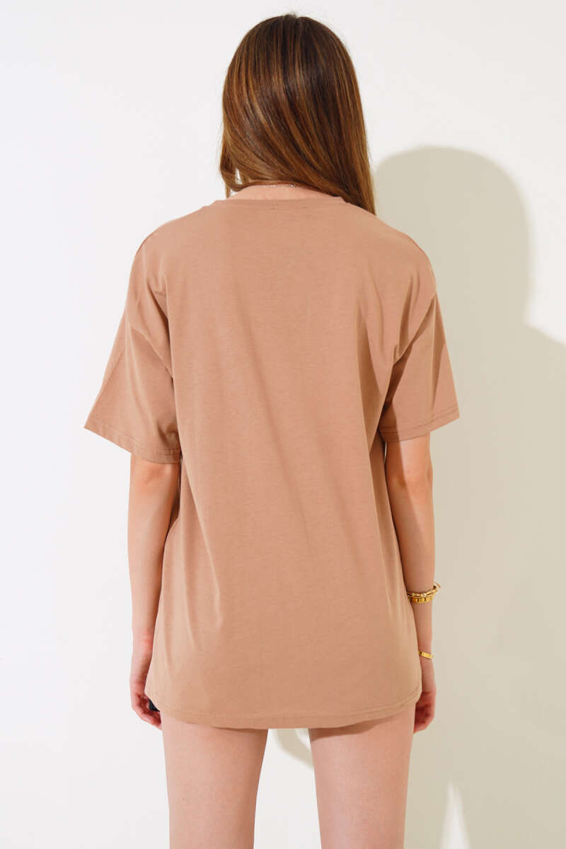 Cep Baskılı T-shirt Latte