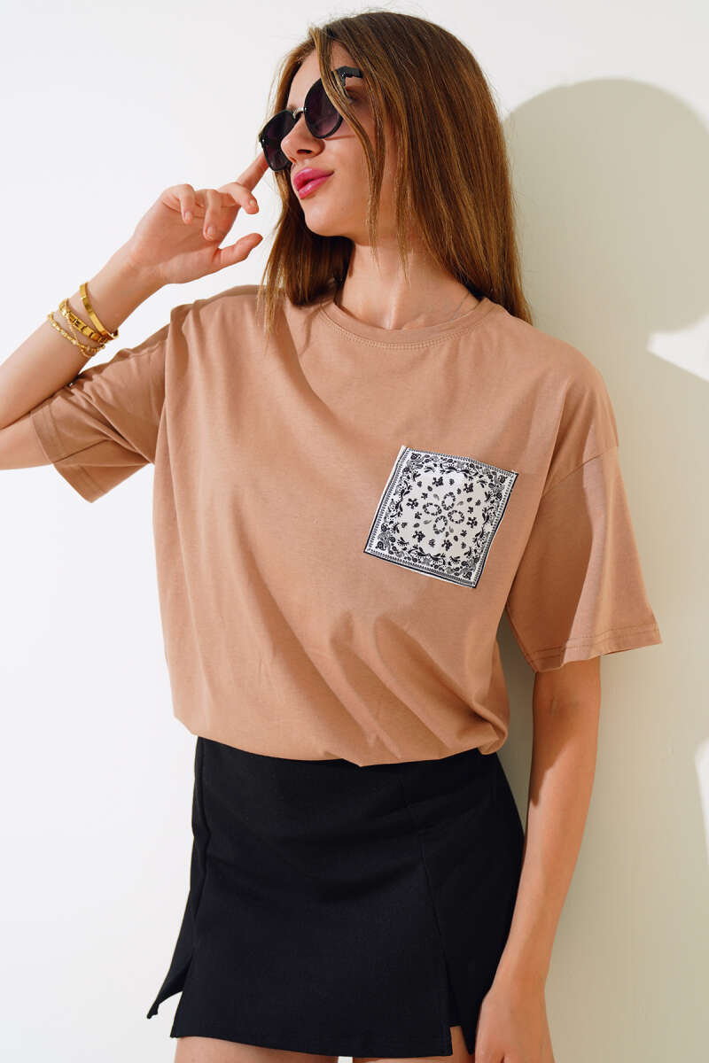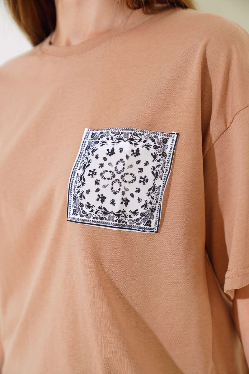 Cep Baskılı T-shirt Latte