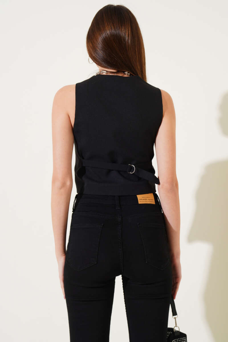 Düğmeli Gömlek Yaka Keçe Ceket Siyah